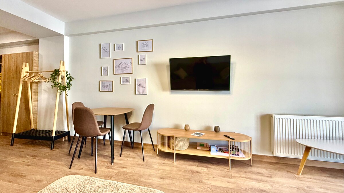 Dobro došli u naš potpuno novi stan u centru grada u srcu Nju Gudaurija, Blok F4, 150 metara od lifta Gondola. Uživajte u udobnom noćnom spavanju na bračnom krevetu, a tu je i sklopivi kauč za još dva gosta. Naš stan je opremljen modernom mašinom za pranje veša i mašinom za pranje sudova. Uživajte u Netflix-u za opuštanje nakon skijanja uz omiljene emisije i filmove. Nudimo besprekornu samostalnu prijavu, što vam omogućava fleksibilnost da stignete sopstvenim tempomom bez potrebe za koordinacijom sa prijemom.