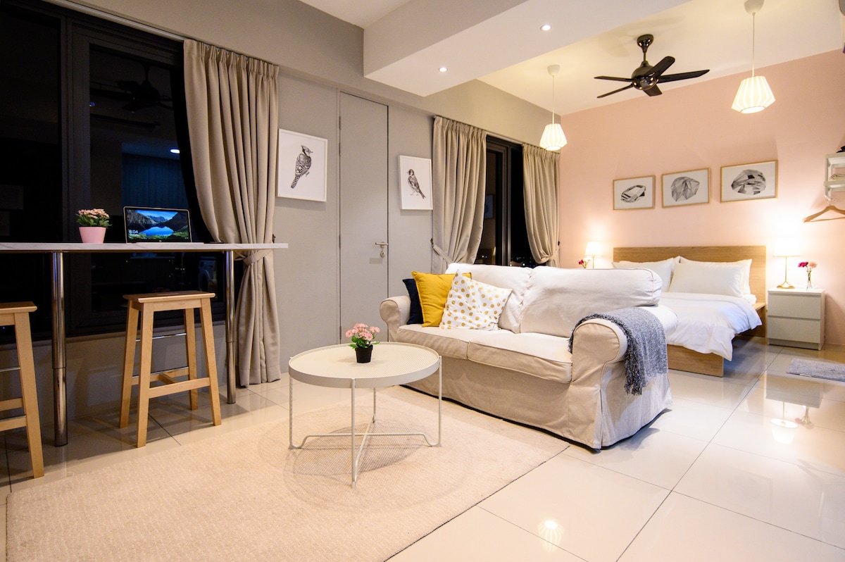 Udoban apartman sa pogledom na more (Dostupno samo za samostalnu vožnju) Naš boravak u domu je studio apartman i privatni stan u blizini mosta Penang sa strateškom lokacijom gde možete lako da pristupite mostu Penang, tržnom centru Queensbay i industrijskoj zoni Bayan Lepas. Naš studio apartman nudi jedan automobil ili jedan parking za motor i to je studio otvorenog koncepta bez spavaće sobe i kuhinje koja je pogodna za mlade parove ili porodicu sa malom decom i može udobno da primi do 2 odrasle osobe i 1kid
