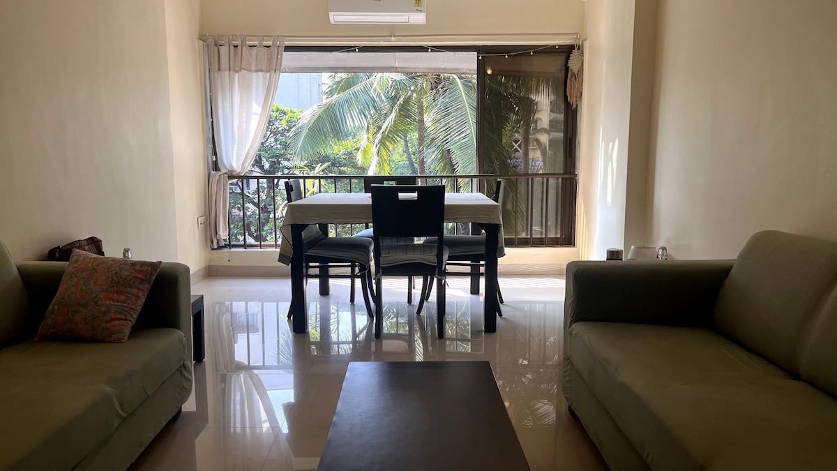 Dobro došli na plažu Versova! Ovaj udoban smještaj s 2 spavaće sobe nudi zadivljujući pogled na more od 180°, samo 40 metara od obale. Smješten u mirnom okruženju Versove, to je savršeno utočište od vreve Mumbaja. Praktično u blizini stanice metroa Versova, omogućava jednostavan pristup gradu. Opustite se uz našu kolekciju knjiga i uživajte u mirnom ambijentu. Uključeno je jedno parking mjesto za automobile. Napomena: - Može doći do buke zbog izgradnje u blizini. - Nije dozvoljeno komercijalno fotografisanje, pušenje ni kućni ljubimci.