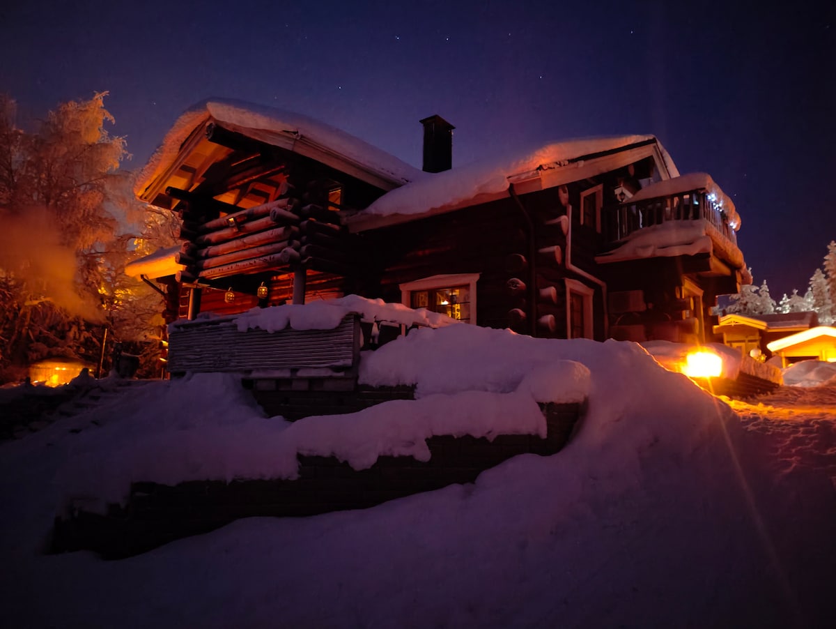 Potpuno nova zimska seoska kućica izgrađena u tradicionalnom okviru trupaca 2019. U seoskoj kućici možete da se opustite u krevetu na nivou hotela i gledate u kamin. Mala kuhinja je vrhunski opremljena. Odlična sauna se zagreva na dodir dugmeta. Seoska kuća se nalazi u neposrednoj blizini Suomutunturija, oko 145 km od aerodroma Rovaniemi. Pored skijanja i skijanja, ovo područje ima i odlične mogućnosti za aktivnosti na otvorenom i kampovanje tokom ljeta. Hotel iznajmljuje skije i organizuje obilaske.