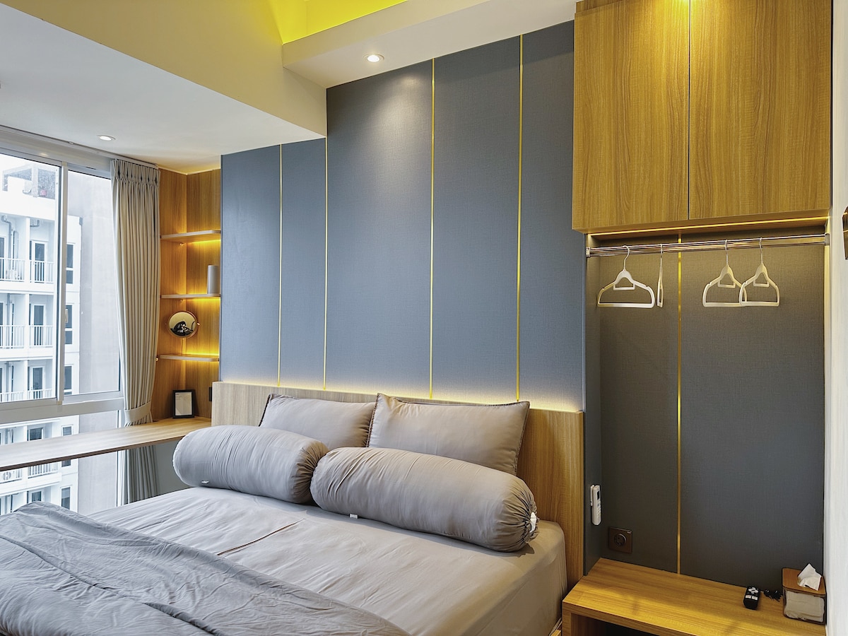 Experience a contemporary modern style apartment, in the center of various hits and tourist attractions in PIK 2. Fully designed 2 bedrooms apartments, with sleek and elegant concept, offers a lavish staying experience. Queen size bed + single bed equipped with Smart TV, open wardrobe, dedicated working table, spacious living/dining space, fast internet, stove, microwave, water heater, encapsulated in a soothing mood. Supermarket, food stalls, and sport activities are all walking distance.