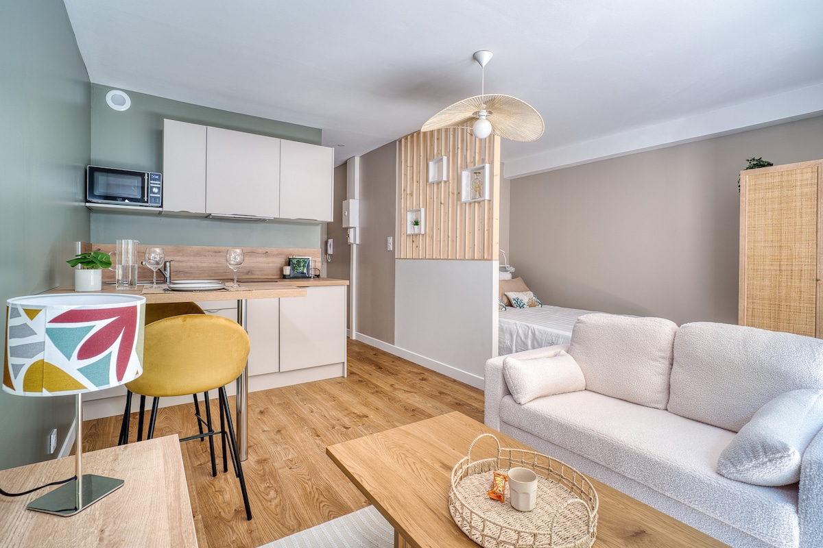 Stan od 57 m2, nedaleko od centra Kvimpera. Očajaće vas svojim dekorom i prelijepom obimom, ima malu baštu okrenutu prema zapadu za uživanje u večernjem suncu. 🌇 Želim da vam pružim kvalitetno gostoprimstvo. 🔎 Moj mali plus, nudim vam igru bijega. 🧭 Otkrijte Papuu i crno zlato stopama čuvenog Hernando Kortesa 🕯 35 € po dijelu, pogledajte dostupnost.( osim od 6 do 20.01. Vidimo se uskoro 🌸