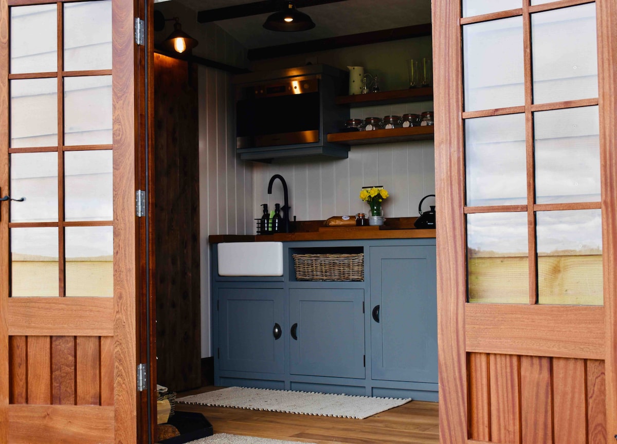 The Shepherds Retreat is a luxury shepherds hut in East Yorkshire, set in a 13 acre field surrounded by the resident flock of sheep at our family farm. The hut is a self contained hideaway with fitted kitchen, dining/lounge with log burner, bathroom and bedroom. Outside is a wood fired hot tub boasting uninterrupted views over the East Yorkshire countryside. Patrington has countless amenities on the doorstep from butchers, bakers, shops and pubs. Beaches can be found within a 10 minute drive.