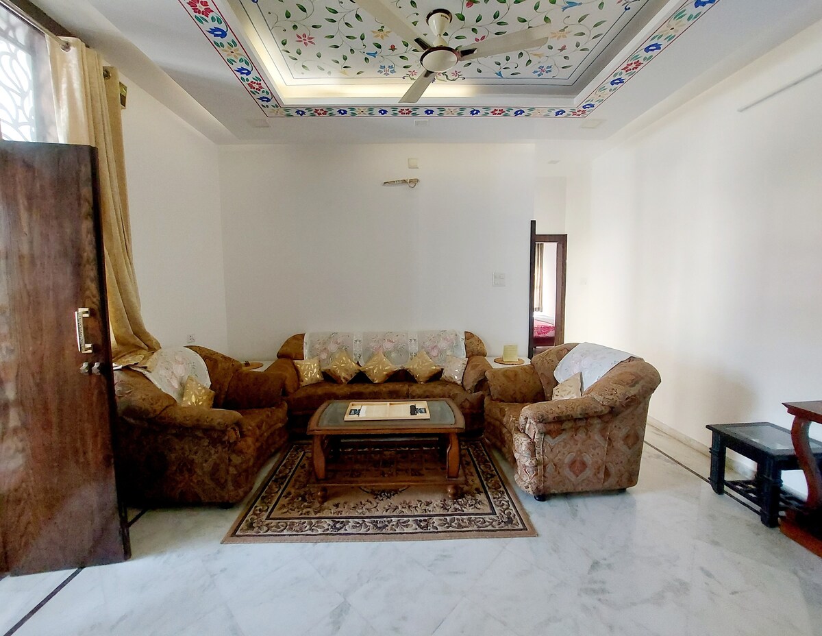Udaipur je pozvao, a ova vila je odgovorila prostorom, udobnošću i stilom. 3 spavaće sobe sa povezanim balkonima, 2 kupatila, potpuno opremljena kuhinja, udobna dnevna soba, baštenska atmosfera, pogled sa terase i parking su obezbeđeni. Savršeno za porodice, prijatelje i sve one koji žele grad jezera napolju, a mir unutra. Upozorenje: možda nećete želeti da odete.