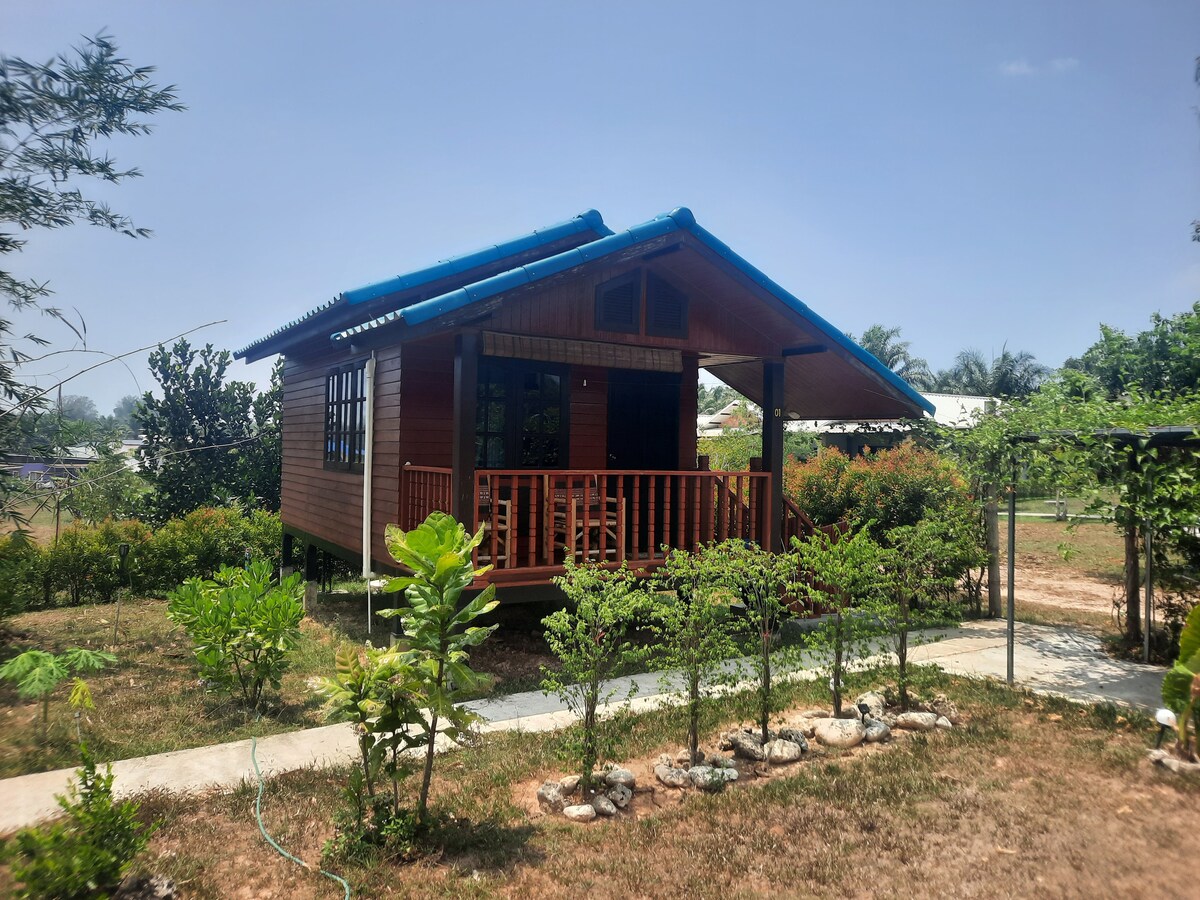 46m2 single bed room bungalow The Bungalows is located on the upper side from the main road in Khuk kak. The bungalows are approximately 3 km from the beach. It is located in a peaceful and quite area, close to the river and you will be viewing of the jungle from the bungalows porch as you wake up in the morning. All bungalows have AC in the bed room, hot water, fans, kitchen,WiFi by fiber broadband and swimmingpool