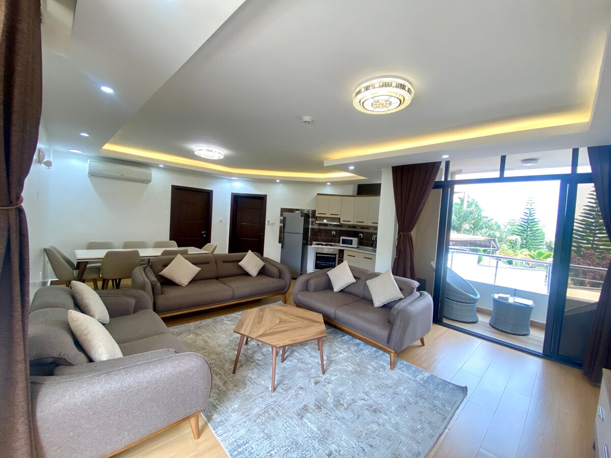 Dobro došli u naš moderni stan u srcu Kigalija! Smješten u blizini svega što vam je potrebno - banke, supermarketi, restorani, stadioni i prodavnice - naš stan nudi luksuz za vaš boravak. Uživajte u vrhunskim sadržajima, uključujući bazen, potpuno opremljenu teretanu i non-stop prijem koji je spreman da vam pomogne sa svim zahtjevima. Naš elegantan i udoban prostor osmišljen je da bude vaš dom daleko od doma. Rezervišite kod nas za izvanredan boravak koji kombinuje modernu udobnost sa vrhunskom uslugom.