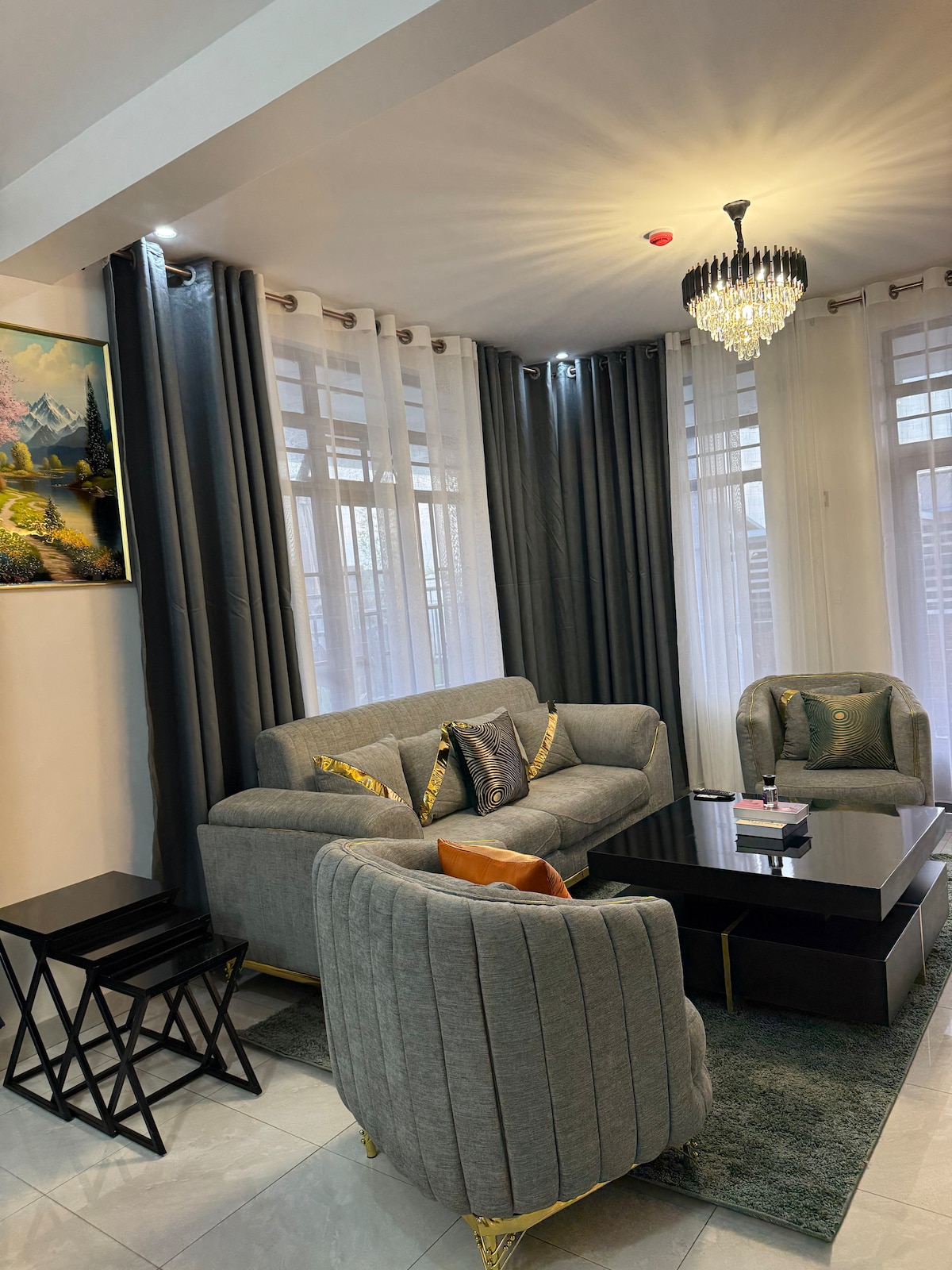 Ovo je udobna moderna kuća koja je potpuno namještena, sa dnevnim boravkom otvorenog tipa i dobro opremljenom kuhinjom. Takođe nudi dvije velike spavaće sobe i futon sa privatnom terasom i pogledom na Kigali. Ima bazen i modernu teretanu. Komunalne usluge uključuju WI-FI sa svjetlovodnim kablovima, TV, mašinu za pranje veša (mašina za pranje i sušenje veša), bezbjednost non-stop i privatnu garažu. Bez kućnih ljubimaca i pušenja. Dugoročni boravci su dostupni i o njima se može razgovarati.