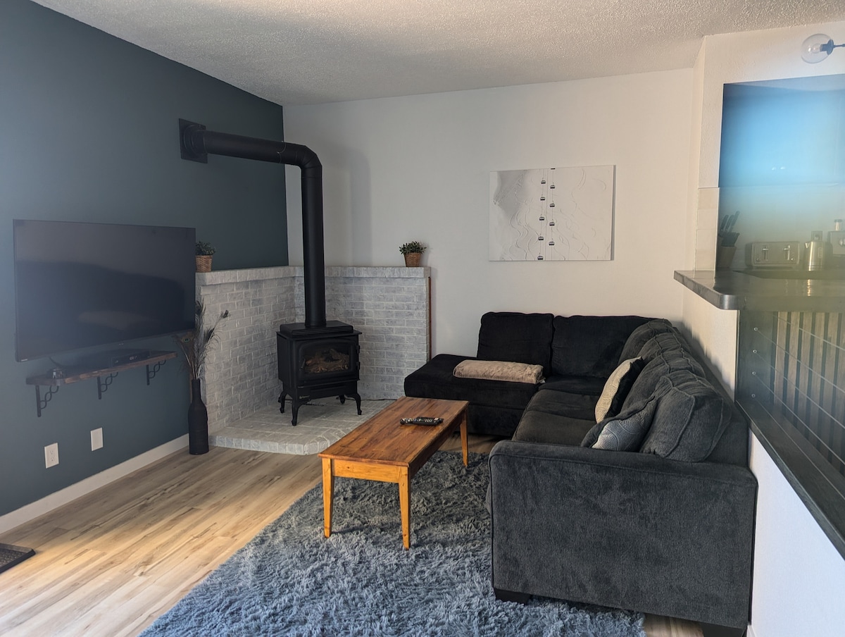 Welcome to Mountainside: The Suite. A boutique-style condo nested against the Purcell mountains with access to kilometres of forested area for downhill skiing, hiking and trail running. Suite Highlights: - Mid-century meets Scandinavian design - Spa-like walk in shower - Cozy fireplace to warm up after a day spent adventuring - Walking distance to Kimberley Alpine Resort and Trickle Creek - Across the street from the Nordic Club - Minutes drive to the Kimberley's downtown "Platzl"