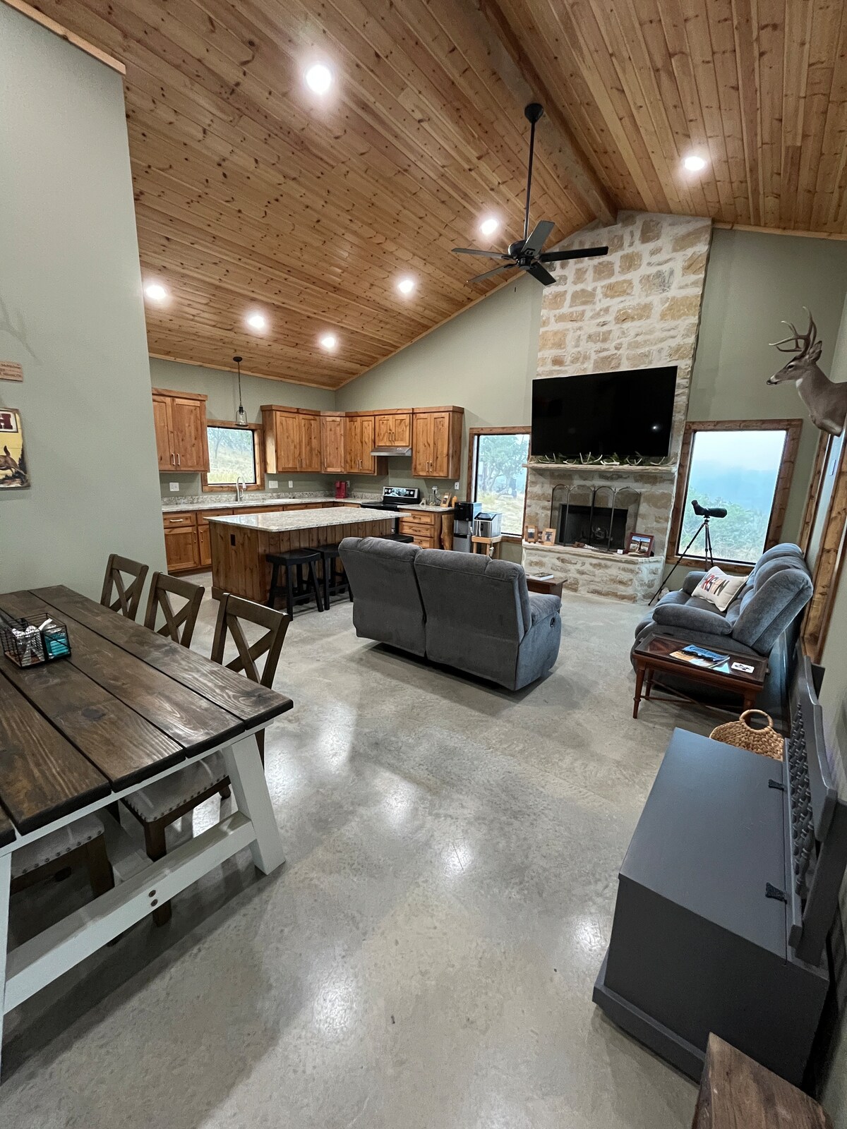 Located on a private ranch that is just over 13 miles from downtown Harper, Run Away Ranch is ideal for anyone looking to relax in a peaceful country setting. The cabin's interior has been thoroughly updated with all of the modern amenities that we've all come to love but retains the charm only found with homes in the country. Enjoy waking up each morning to native wildlife and the resident longhorns.
