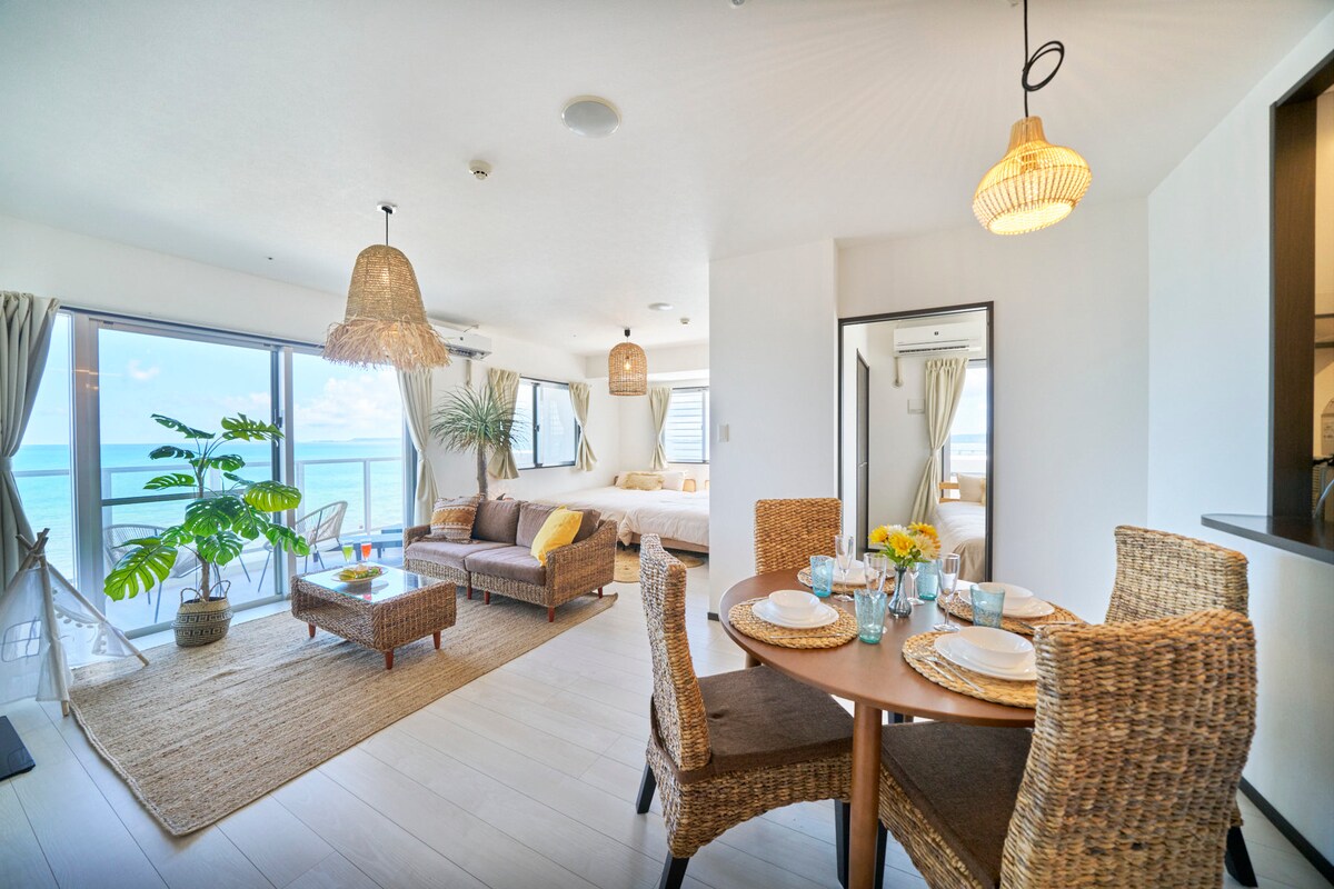 Nalazi se u mirnom stambenom području na plaži Kinmači Jaga, sa prozora se vidi more. Preporučene kompanije za iznajmljivanje automobila mogu da uvedete! Do prodavnice (Loson) ima 3 minuta hoda. Šoping grad Ishikawa Sangae udaljen je 3 minuta vožnje. U krugu od 20 minuta vožnje nalazi se Kejp Maeda, poznat po plavim pećinama. Udaljen je oko 5 minuta, a Išikava se nalazi, a lako je pristupiti severu (kao što je akvarijum Čuraumi) i jugu (kao što je dvorac Šuri). Postoji besplatan parking za 3 automobila. Deca mlađa od 5 godina su besplatna. Smeštaj je dostupan za najviše 6 osoba, ali postoji krevet za najviše 4 osobe. (Dvoje ljudi mora da koristi dušek.)Hvala na razumevanju.)