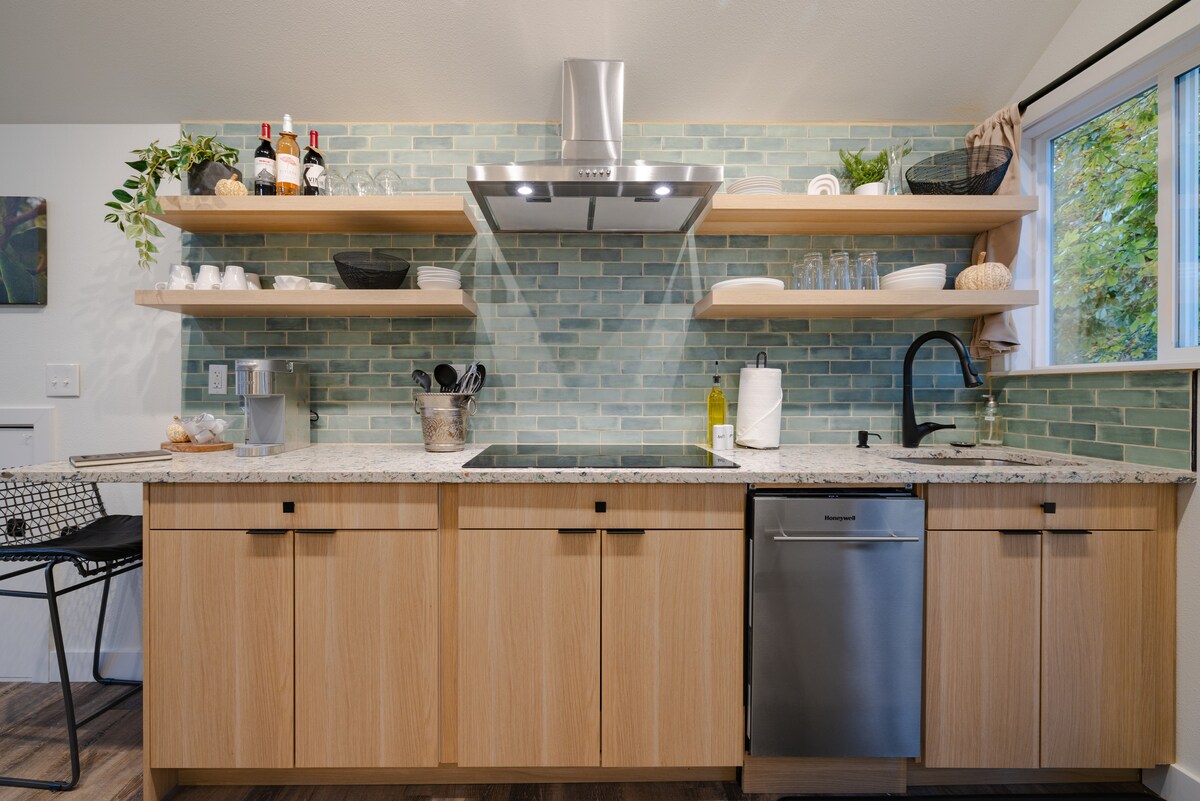 Your adventure begins... in a new, modern and fresh space with tons of natural light and privacy. Imagine waking to the sounds of farm animals, sipping morning coffee on your covered porch as sunlight breaks through the big leaf maples, wandering miles of forested trails, biking island roads, kayaking, paddle boarding or combing sandy beaches of Puget Sound while searching for sea treasures. When nighttime falls, share stories around a bonfire and count stars as they fall from the sky.