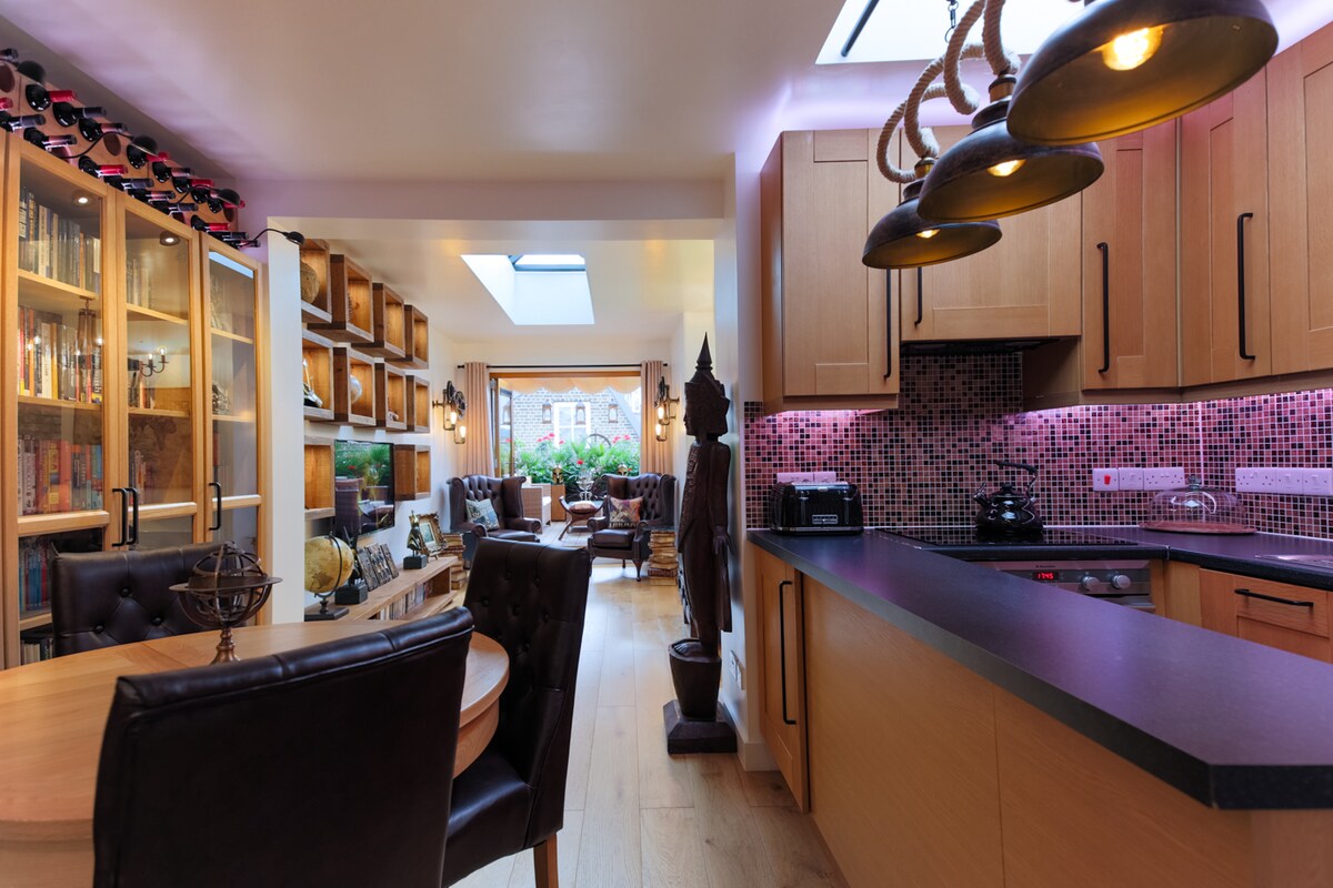 Welcome to a magical apartment in a fantastic location. Part of a handsome Georgian rectory, it has been exquisitely refurbished. Inside it feels high-end, stylish and a little funky. Outside there's a tranquil patio. You can catch a train from Kings Cross in 3 minutes. In 10 you can walk to Bloomsbury and the British Museum. Nowhere in central London is more than 20 minutes away. Best croissants in London, 100 yards. And, yes, a day-trip to Paris is practical!