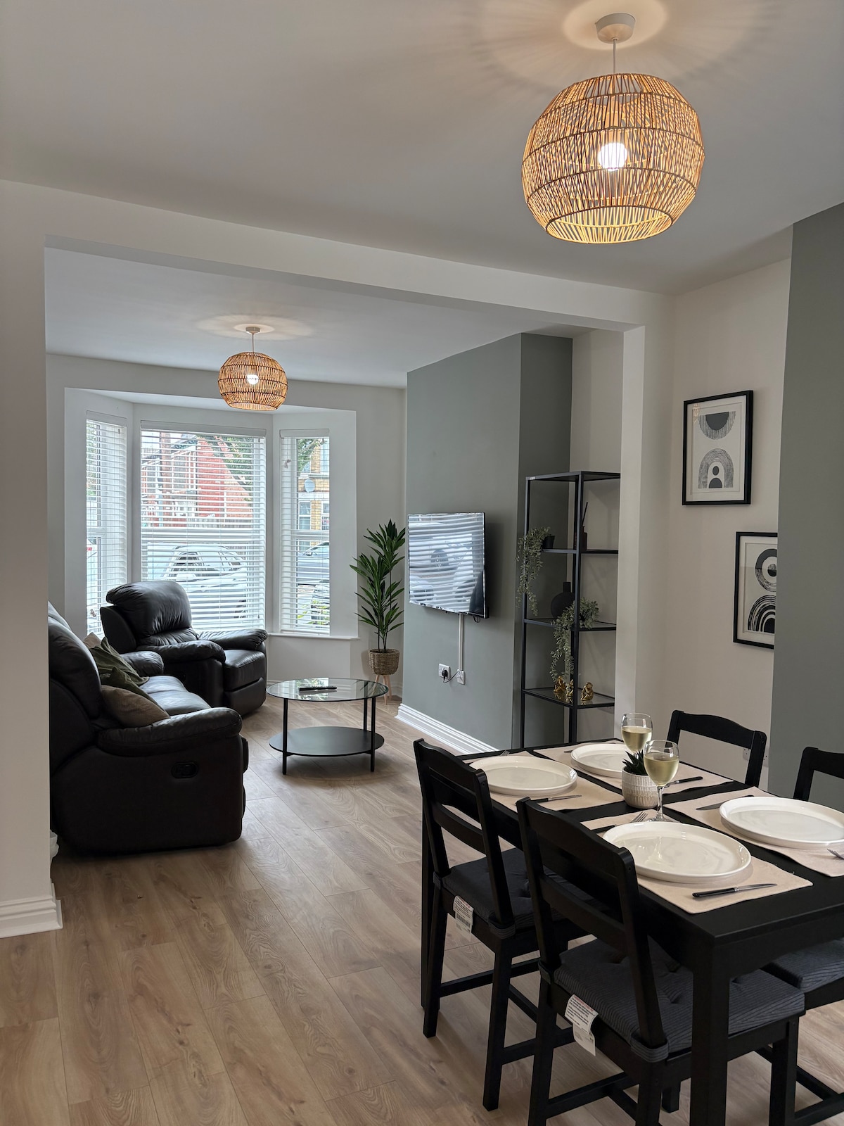 This is our charming little townhouse in Hull. It’s in the Dukeries area just off the bustling Prince’s Avenue, which has cafes, bars and independent shops. We’re five minutes’ drive from the town centre in one direction, and five minutes from both the university and the KC stadium in another. There is free on-street parking outside. Inside there is ample space for a family or two couples, with a living room, dining area, fully equipped kitchen, bathroom and two guest bedrooms.
