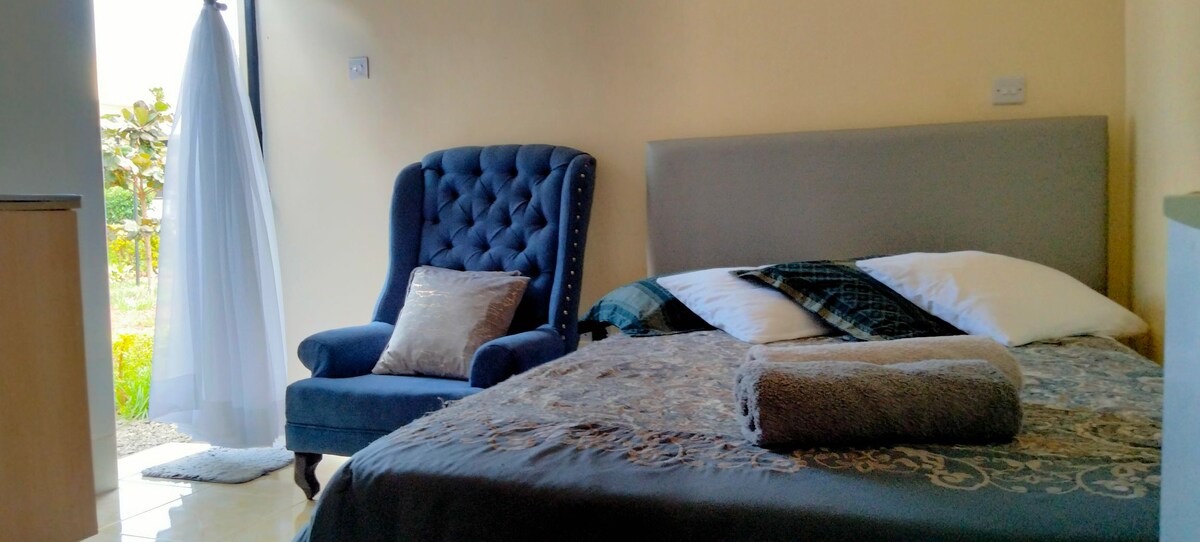 Luksuzni i udobni potpuno namješteni jednosobni stan. Prekrasan pogled na zalazak sunca, sa besplatnim parking mjestom i neograničenim internetom i bezbjednošću . 10 minuta vožnje od Kisumu CBD-a i 15 minuta od međunarodnog aerodroma Kisumu. U blizini tržnog centra Lake Basin i drugih sadržaja. Vaša porodica će biti blizu svega kada odsjednete u ovom smještaju koji se nalazi u centru grada.