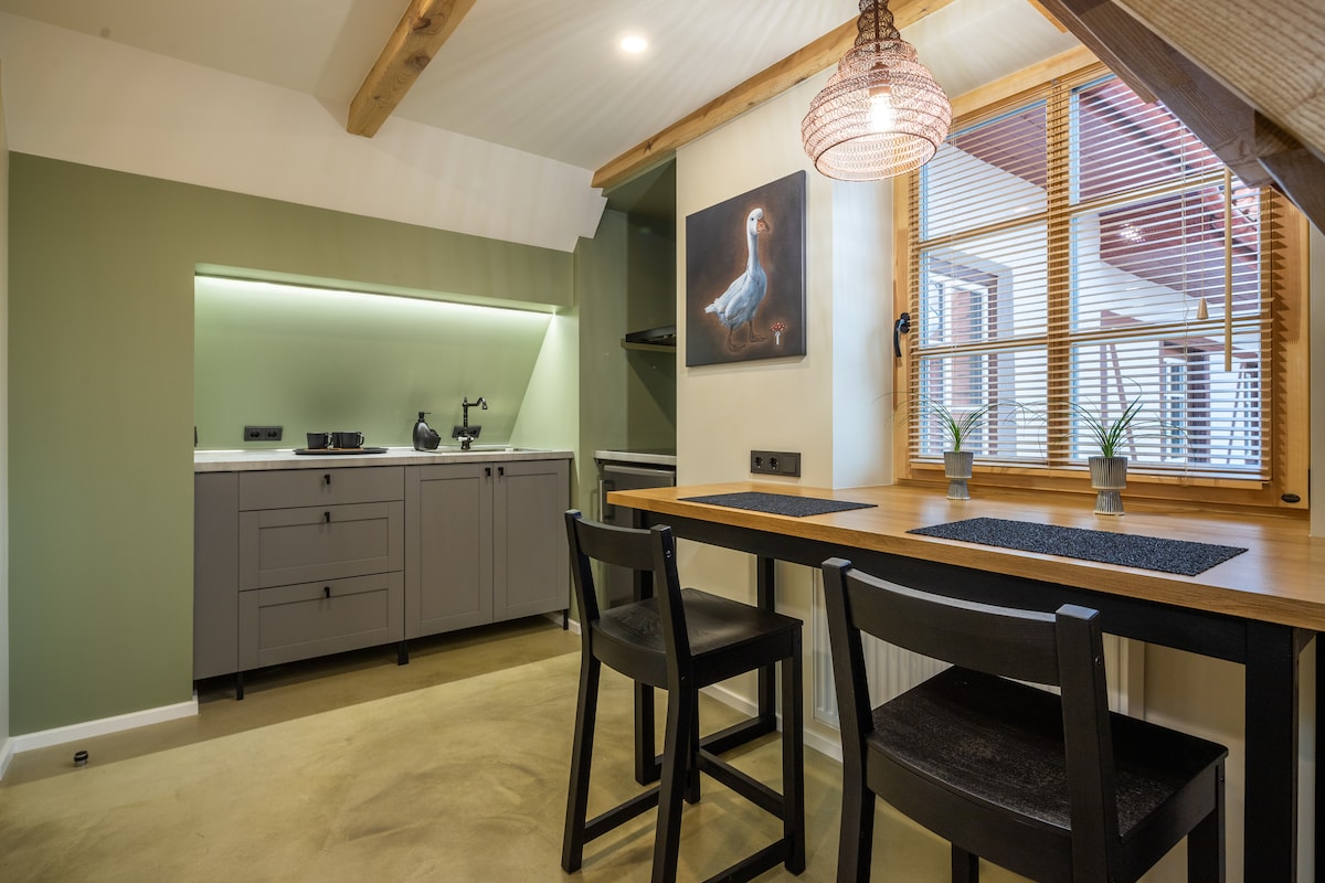 Superior LAUB & LOFT APARTMENTS are spacious & stylish loft-style apartments located in brand new building with a private yard. The loft apartments has two floors - a bright and airy living room with a kitchen, 1 separate bedroom, 1 bathroom with free toiletries on the first floor and a bedroom space and a working area on the second floor. The space is suitable for couples, families or friends (up to 6 people). Car PARKING in the closed inner yard is FREE.