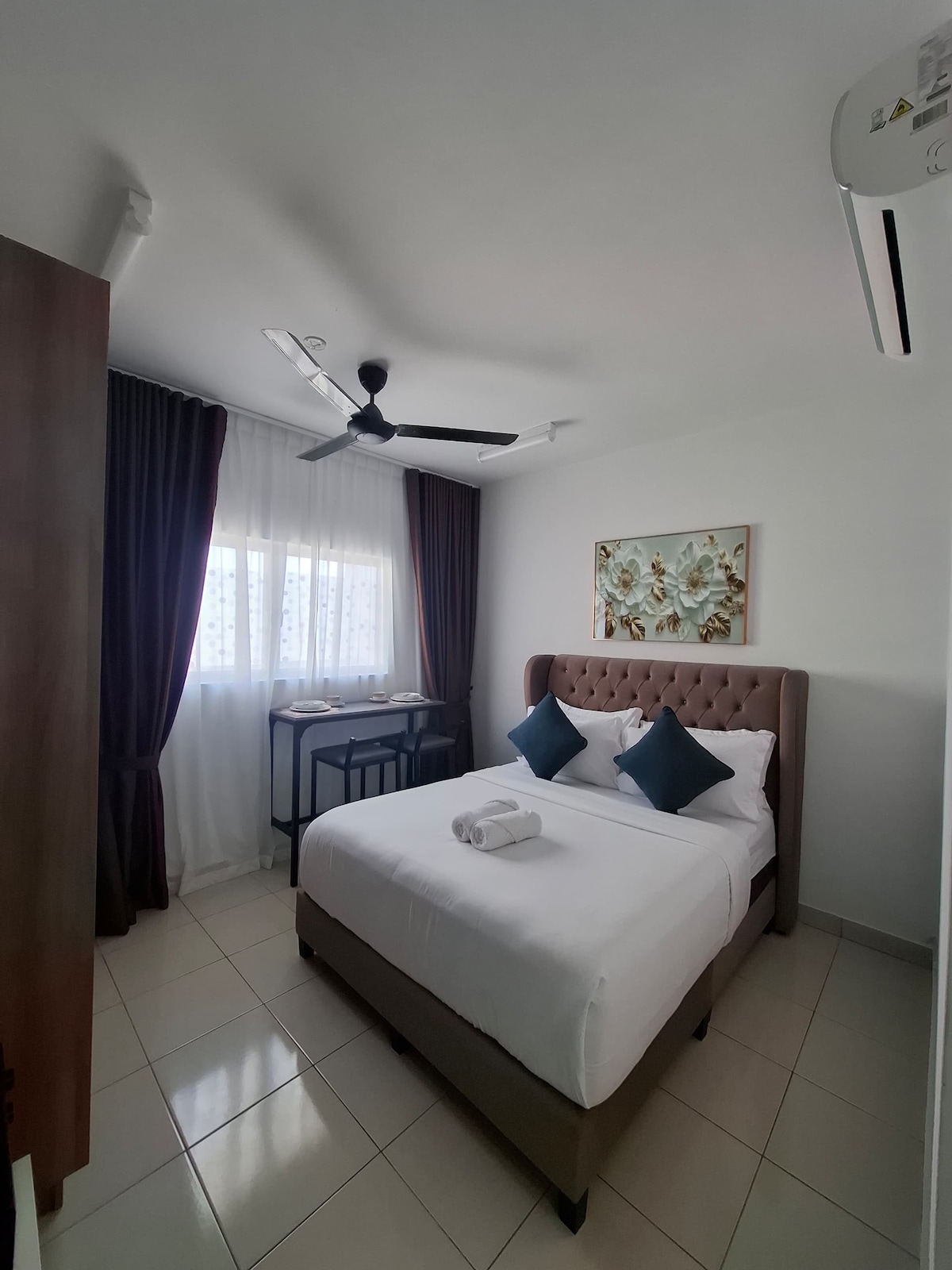Nalazi se u blizini KLCC-a u Jalan Sultan Ismailu, odmah nasuprot hotela Sheraton i 1-2 km od Shangri-La Kuala Lumpur, Bukit Bintang, Paviljon. KL Tower , Petronas Twin Tower, World 2nd highest PNB118. Moja jedinica je bila privatna jedinica direktno povezana sa tržnim centrom i željezničkom stanicom udaljenom samo 25 metara sa pješačkom stazom Aircond. Nevjerovatno praktičan apartman s dodatnim uslugama za brendove i Netflix nalogom spreman za 58-inčni Sharp 4K 3D TV, Apple TV 4K verzija. Namješten sa 1 bračnim krevetom + 1 bračnim krevetom + 1 krevetom za jednu osobu.
