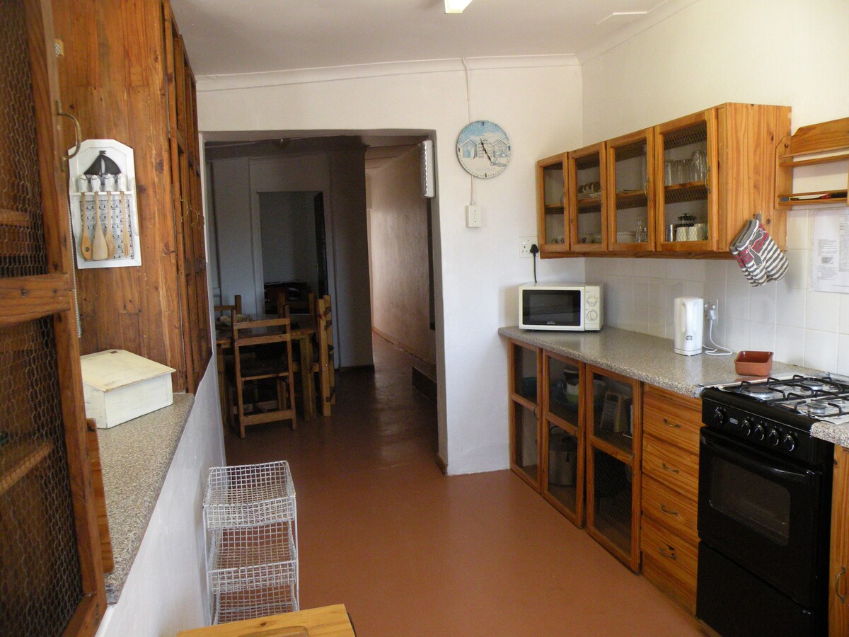 Isključite se i opustite u našoj mirnoj seoskoj kući na solarnoj energiji na 400 hektara, samo 9 km od Springboka. Ovaj prostrani smještaj sa 3 spavaće sobe i 3 kupatila spaja modernu udobnost sa sirovom prirodnom ljepotom. Posebnosti: • Samoodrživi luksuz sa kompletnom kuhinjom, kaminom i braaijem na otvorenom • Hlađenje pomoću hladnjaka za isparavanje • Kristalno čisto posmatranje zvijezda • 400 godina star Kokerboom i rijetke autohtone biljke • Mirne pješačke staze, panoramski pogledi i koristan pastir Rezervišite idealan odmor na selu odmah.