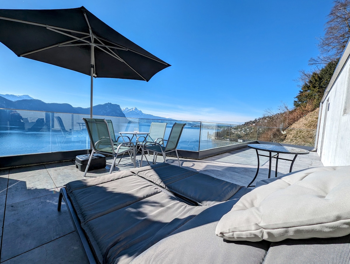 Stan se nalazi direktno na jezeru Luzern, a između njega nema javnog puta ili puta. Balkon s veličanstvenim pogledom na jezero, privatna terasa tik uz jezero i privatni pristup jezeru. Luzern je udaljen oko 40 km, a do njega se može doći automobilom, autobusom, vozom, a takođe i brodom. Cirih je udaljen oko 70 km. Turistička taksa i završno čišćenje su uključeni u cenu.