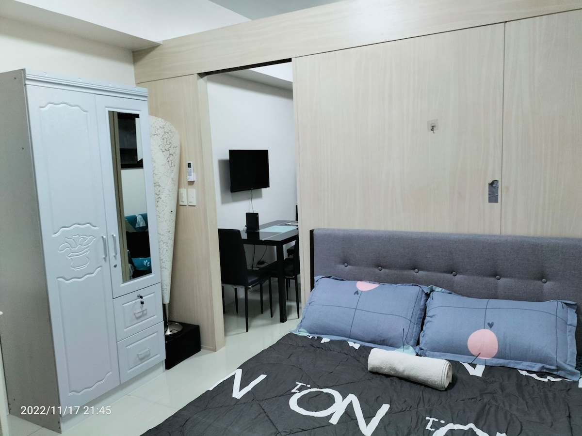 Studio apartman s balkonom koji se nalazi u gradu Cypress Tower taguig. Ovo mjesto je idealno za dvoje ljudi. U blizini lokacija Mekinli, BGC i Makati. Pristup bazenu je dozvoljen samo od ponedjeljka do petka uz naknadu od 150php po osobi. Wi-Fi i andriod TV u sobi za Netflix i YouTube. Parking će biti dostupan na zahtjev po cijeni od 250php/dan.