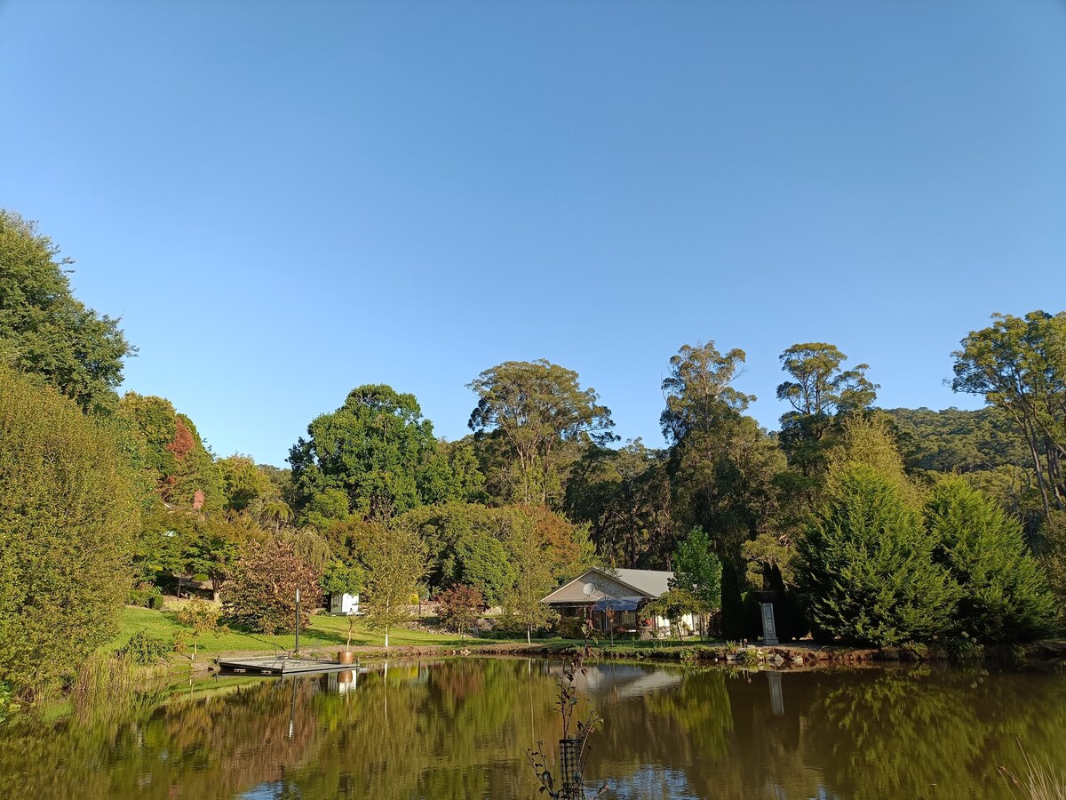 Set on 22 acres of bushland, lakes and gardens, your private studio apartment is waiting for you to unwind, take a breath and enjoy the sounds of birds and a view to the city right at your doorstop. Room 3 overs a lake side view with direct access to our pool/cocktail toom and perfect place to explore the dandenongs, whether it be drive, bike or hiking 'the banksia' track behind the property. Our luxury linen and bedding provide a warm and comfy night's sleep.