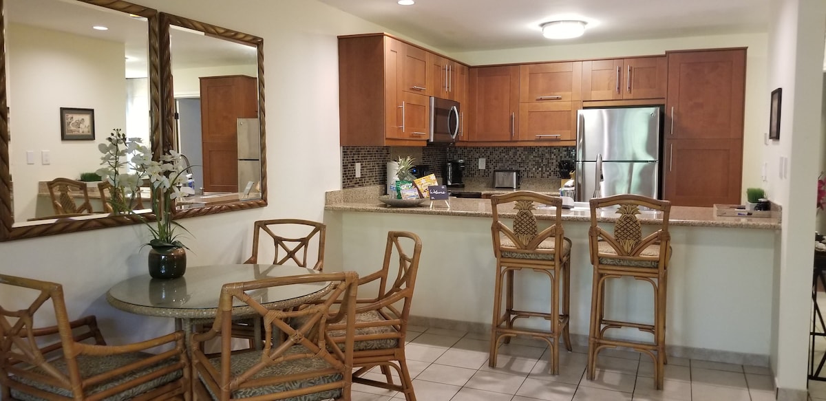 Preko puta plaže Kalepolepo, ovaj stan od 621 kvadratnih metara nalazi se u tropskim zen baštama Kihei Resorta i ima prostranu lanai. Jednosobna jedinica je u potpunosti renovirana i ima sve sadržaje, uključujući bračni krevet u spavaćoj sobi i futon za spavanje u dnevnoj sobi, potpuno opremljenu kuhinju, Wi-Fi, Samsung Smart TV, ulaz bez ključa, unutrašnje pranje veša, parking, opremu za plažu (stolice, peškire, igračke, opremu za ronjenje) bazen i hidromasažnu kadu. Pošaljite upit za posebne cijene.