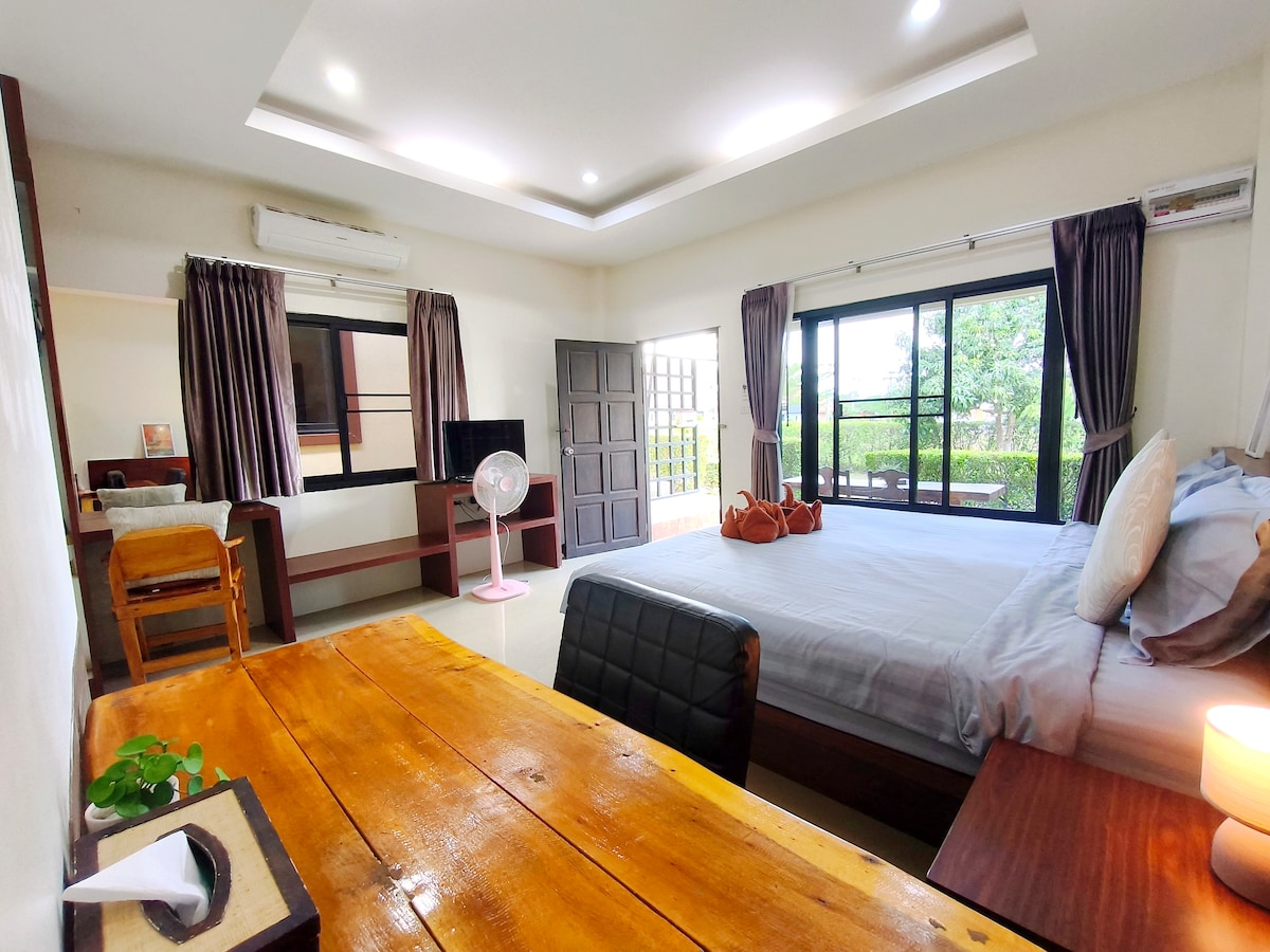 Promotion : Weekly 15% off ~ Welcome to our Cozy Wooden House in Krabi Town , Nestled amidst the serene beauty of nature, our unique retreat is more than just a place to stay – it's a warm and welcoming haven that feels like home. Our handcrafted house is a labor of love, designed and built by me and my dad. The use of natural wood throughout reflects our commitment to creating an inviting and comfortable environment .