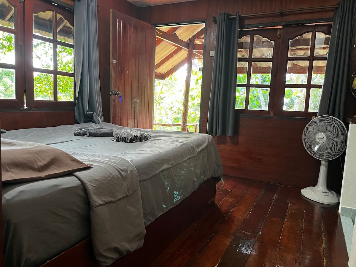 Prostran: Smještena na obali plaže Bang Por, ova vila s jednom spavaćom sobom ima umetničku atmosferu. Stambeni prostor je svetao i prozračan, sa velikim drvenim prozorima koji se širom otvaraju i pružaju pogled na okean koji oduzimaju dah. Spavaća soba je udobna sa bračnim krevetom i bijelom posteljinom. Spoljašnja velika terasa vile savršena je za sunčanje i uživanje u slanom okeanskom povjetarcu. Ova vila uz plažu je savršeno odredište za odmor za parove. Napomena: struja se plaća unaprijed po cijeni od 200 THB/ dan