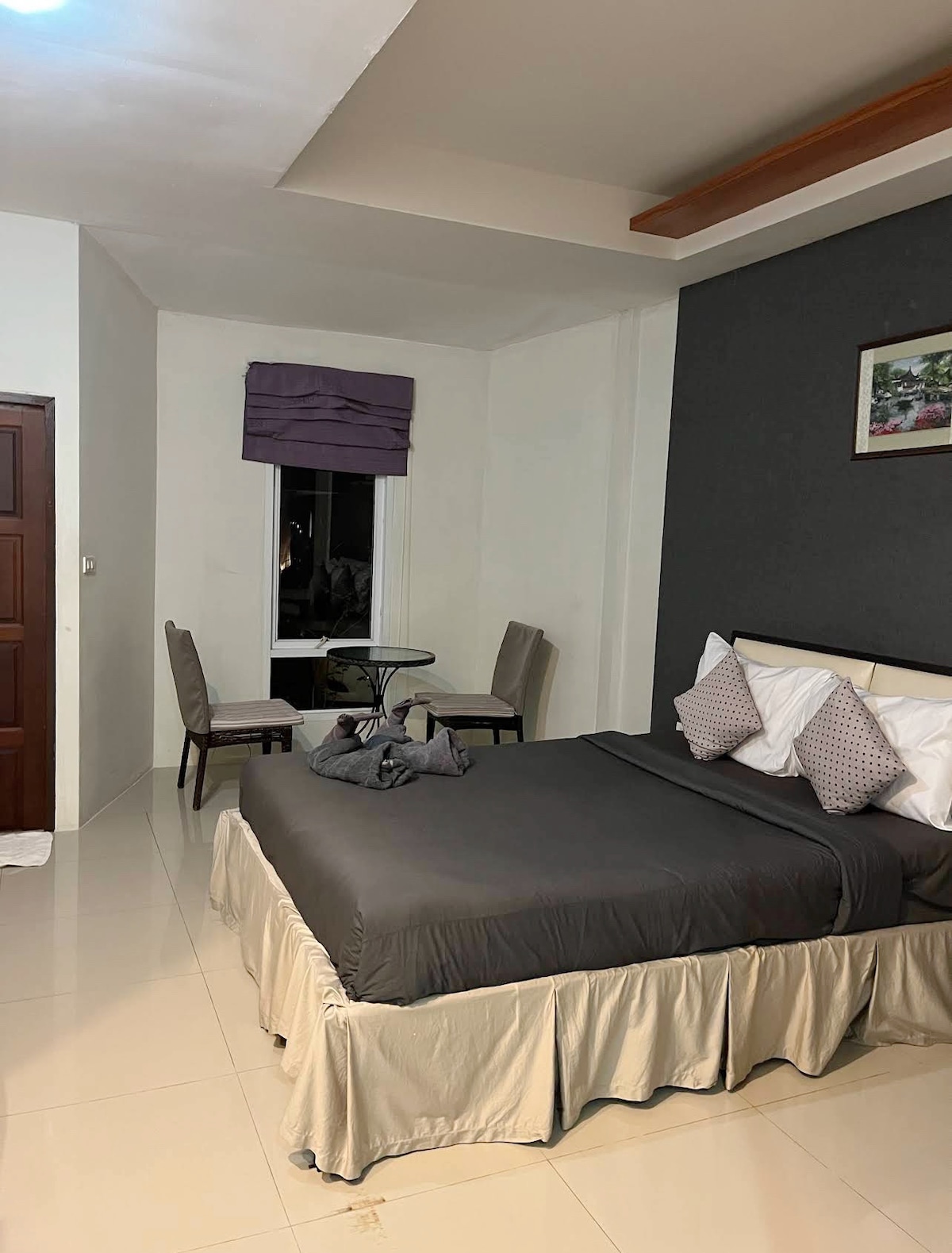 Udobnu sobu u balijskom stilu karakterišu drvena lučna vrata i prozori koji pružaju topao, privatan i opuštajući osećaj. Uređen autentičnim drvenim materijalima, prirodnim tonovima i toplim svetlima stvara atmosferu, savršenu za čisto opuštanje. U sobi se nalazi veliki krevet, tamnozelena zavesa u stilu odmarališta, radni sto/toaletni stočić, TV i kupatilo u sklopu sobe. Savršeno za parove, putnike ili one koji traže miran odmor u blizini ribarskog sela, Koh Samui.