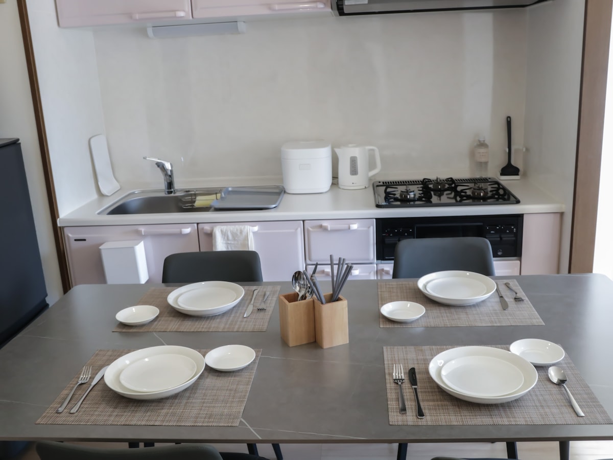 [New Open] Otvoreno 14. juna 2025. godine! Ovaj stan se nalazi u mirnoj rezidencijalnoj četvrti, 10 minuta hoda od Kitakyushu Monorail "Kasugaguchi Sanhagino Station". To je popularan objekat koji je teško rezervisati, pa vam preporučujem da ga sačuvate kao omiljen! Novootvoreni objekat nudi savršenu lokaciju i udobnost za turiste koji posjećuju Japan. Pored toga, radi se o relativno novom dizajnerskom objektu izgrađenom 2023. godine, tako da je i enterijer u prelijepom stanju. Tu su i domovi, prodavnice sa popustima, prodavnice mješovite robe i restorani u okolini objekta, tako da možete da imate udoban boravak čak i za dugoročne boravke. BESPLATAN Wi-Fi, kuhinjski prostor, namještaj i kućanski aparati.