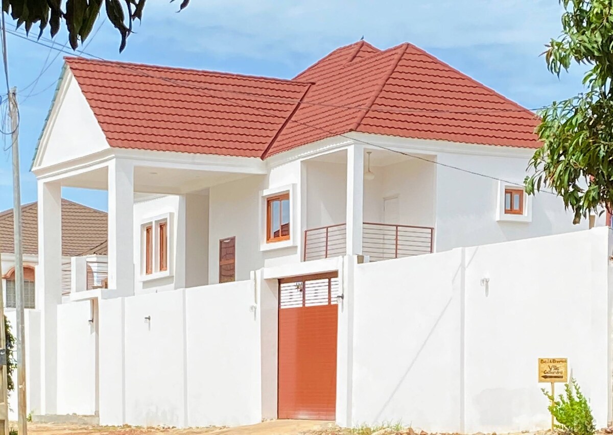 Brufut Luxury Home je elegantno, ekološki osviješteno utočište u mirnim vrtovima Brufut. Uživajte u klima-uređaju, Wi-Fi mreži, Netflix-u, pametnom TV-u od 50", punoj kuhinji i bujnom uređenju inspirisanom gambijskom kulturom. Samo 10 minuta od plaže i u blizini pijaca, restorana i kulturnih mjesta. Uključuje privatni parking, aktivne CCTV kamere napolju za dodatnu bezbjednost i toplo lokalno gostoprimstvo. Idealno za parove, porodice i solo putnike. Odsjednite u udobnom ambijentu sa modernim sadržajima, tropskim šarmom i prijatnom atmosferom.