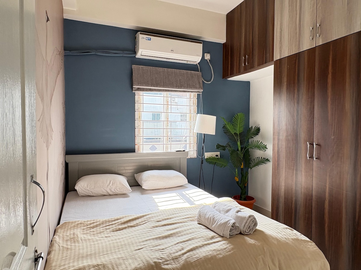 Dom iz snova 💙 Duševni kutak u kojem se osjećate kao kod kuće. Umotan u mir, udobnost i blagi zagrljaj 🌿 Prostor u kojem se zadržavaju jutra, a noći šapuću priče 🌙 📍 U srcu Kondapura — Na samo nekoliko koraka od tržnog centra Sarath City, Shilparamam i botaničke bašte. Samo 10 minuta do HITEC Sitija i svih popularnih informatičkih centara 💻 Napravljeno za ljubitelje malih trenutaka, lutalica i WFH sanjara ☕ Ostanite kod kuće. Lagano dišite. I nađite se tamo gdje zaista pripadate. 💫