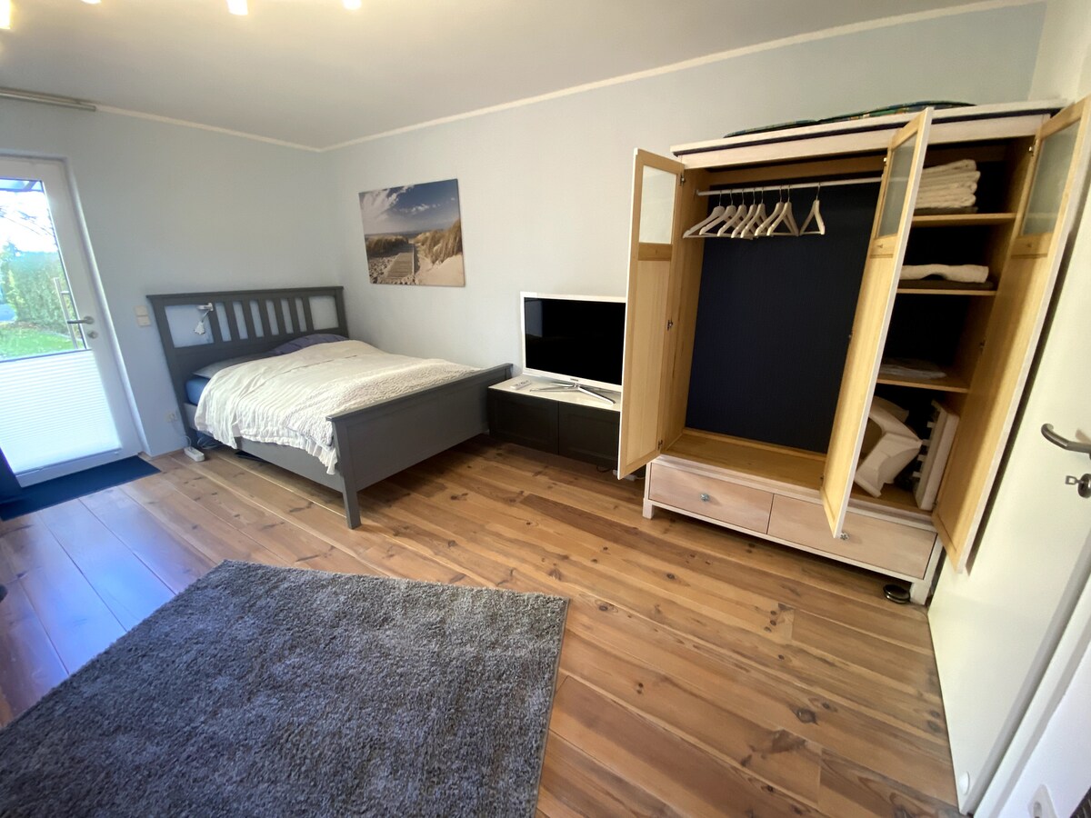 Large bright apartment quiet right by the forest, for 2 persons (double bed), 1 - 2 children can additionally sleep on the couch in the living room. Wi-Fi, fully equipped kitchen, large bedroom, each a plasma TV in living room and bedroom, bathroom with shower, tub and toilet, guest toilet, free parking, terrace to the forest, modern furniture, smoking corner on the terrace ( please do not smoke in the apartment ). The apartment is not suitable as a craftsman accommodation for more than 1 guest.