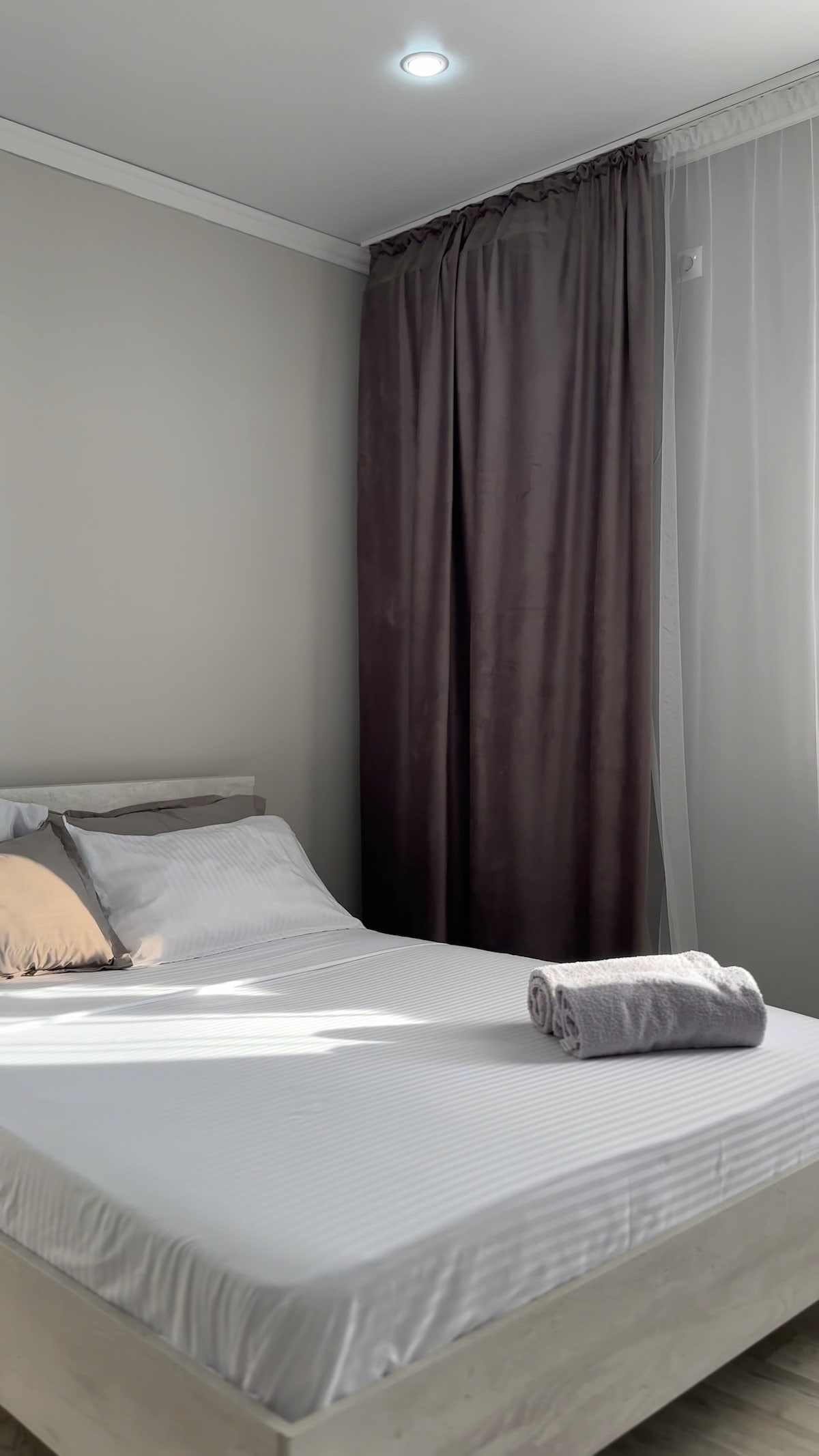 Uz udobnost doma, smještaj za opušten porodični odmor. Naš stan je veoma čist , udoban i udoban. Na raspolaganju vam je sve što vam treba za boravak: daska za peglanje, pegla, mašina za sušenje veša, klima-uređaj, bojler. Lift u zgradi. Radi praktičnosti, 2 supermarketa ,prodavnice u blizini kuće, apoteka, kafići, zabavni centar Tuto Krato, sportski kompleks Kazahstan i još mnogo toga nalaze se na pješačkoj udaljenosti.