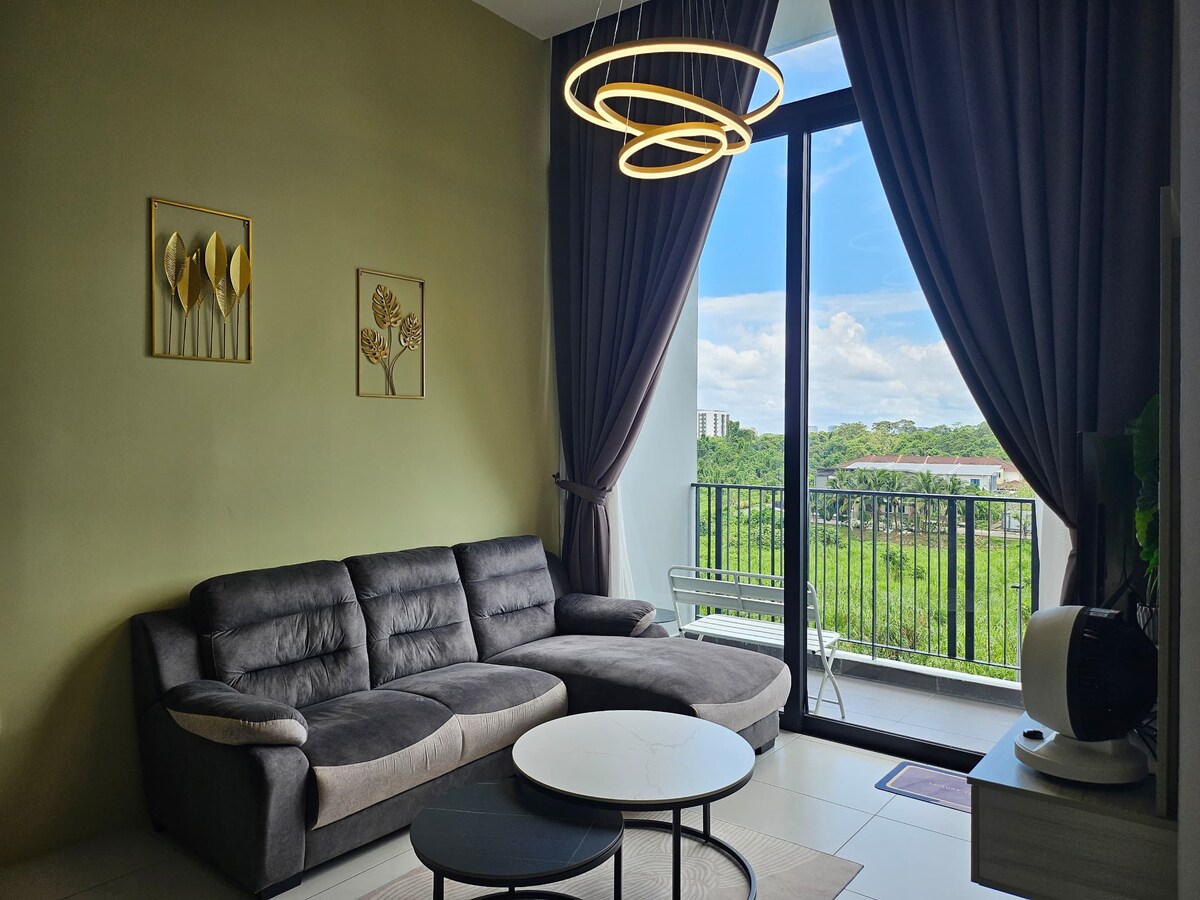 Uživajte u elegantnom doživljaju u ovom smeštaju koji se nalazi u centru grada. Idealno za one koji odlaze/dolaze na/od Međunarodnog aerodroma Kuching - udaljenog 1,5 km. Jednostavan pristup: supermarketima, restoranima, kopitiam, pabovima,frizerskom salonu, buticima, klinikama, apotekama, bolnicama. U blizini šoping područja: -Saradise, BDC, GalaCity, Premier 101 restoran, Aeroview, VivaCity, The Spring & Aeon Mall. U blizini medicinske bolnice Borneo, bolnice KPJ (1 km) i Medicinske bolnice Timberland 0,7 km do međunarodne škole Borneo.