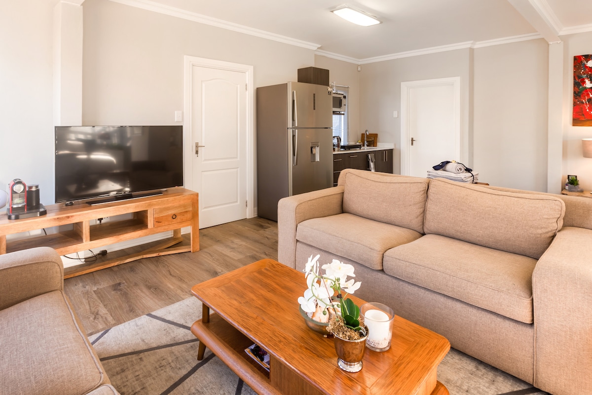 300 m od naše plaže, privlačna, svijetla i privatna dvokrevetna soba sa kupatilom. Udoban bračni krevet i peškiri sa toaletnim potrepštinama. Besplatan brzi Wi-Fi. Parking izvan ulice sa sopstvenim privatnim ulazom koji vodi do braai terase sa sjedećom garniturom i stolom. Nema zajedničkih prostorija. Ugošćavajte u glavnoj kući. Frižider, kuvalo za vodu, mikrotalasna rerna i fen za kosu. U blizini su lokalni restorani, mini pijaca, kafići, teretana i bazen. U blizini svjetski poznatog mjesta za surfovanje, staza za trčanje/biciklizam i prirodnih rezervata.
