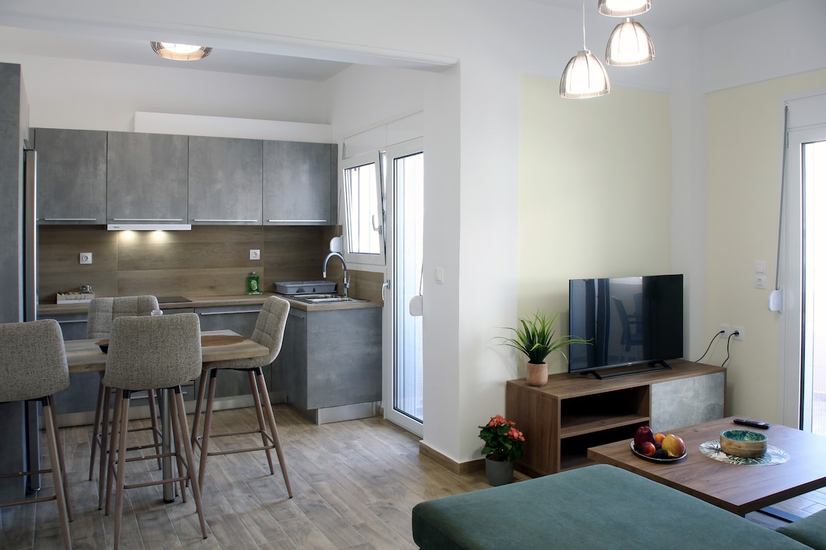 Smješten u mirnom području, ali pored plaže i svih sadržaja, ovaj luksuzni potpuno novi stan ima jedinstveno okruženje koje obuhvata čuvenu ljepotu Krita i kombinuje ostrvsko gostoprimstvo sa udobnošću modernih sadržaja. Stan je potpuno nov i lako može da ugosti do 4 gosta. Najbliža pješčana plaža Vlites udaljena je manje od 600 metara. Minimarkets, taverne, kafić itd. Takođe su udaljeni samo nekoliko minuta od stana.