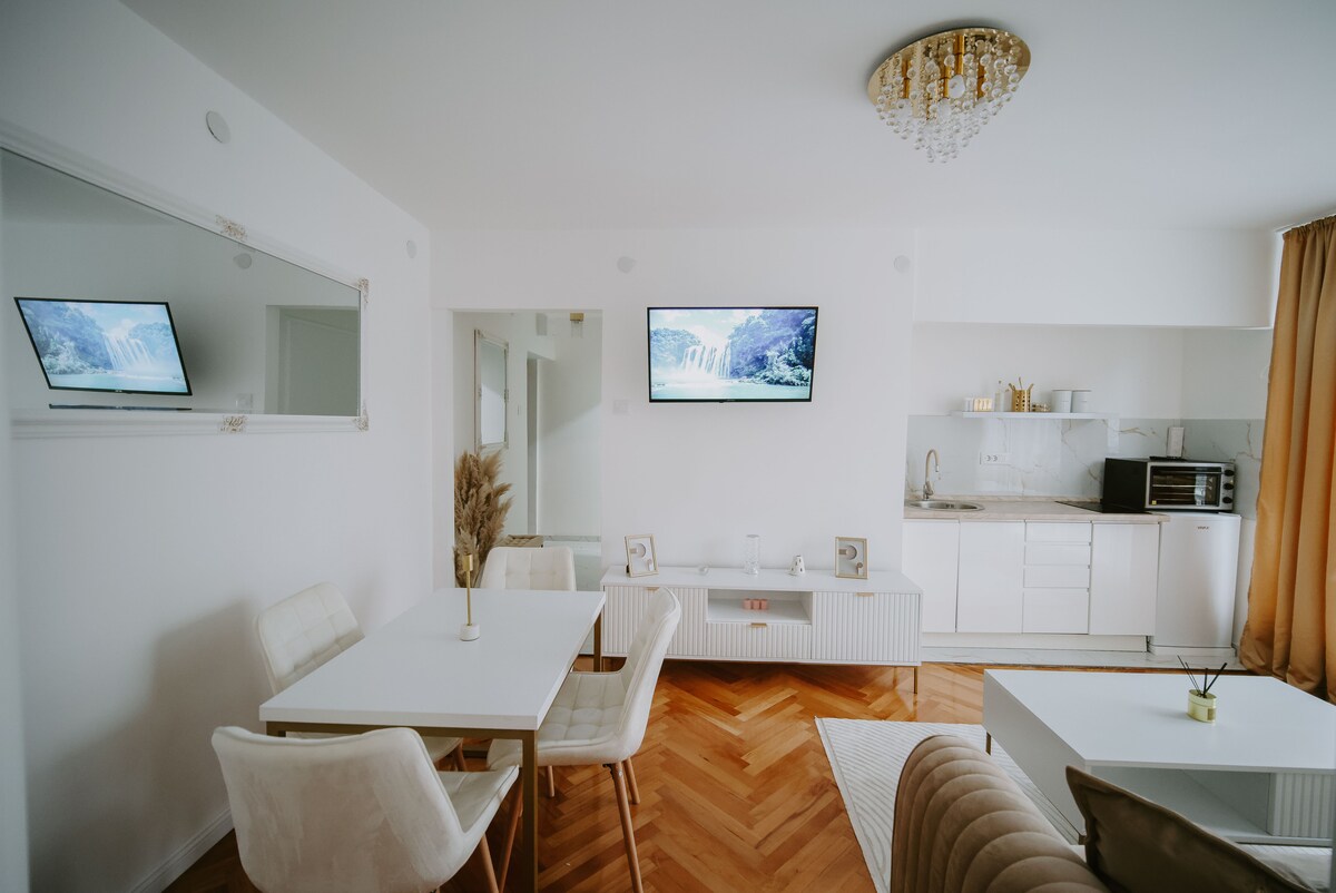 Opustite se i odmorite u ovom mirnom, elegantnom smještaju. Potpuno nov i moderan studio, opremljen svim sadržajima potrebnim za Vaš boravak, bilo da dolazite turistički ili poslovno, sami ili u paru pružiće Vam jedinstveno iskustvo boravka u Banjoj Luci. Apartman posjeduje privatan parking koji se nalazi u dvorištu objekta. Okružen je brojnim kafićima, restoranima, shopping centrima, salonima ljepote, tatoo studijima.