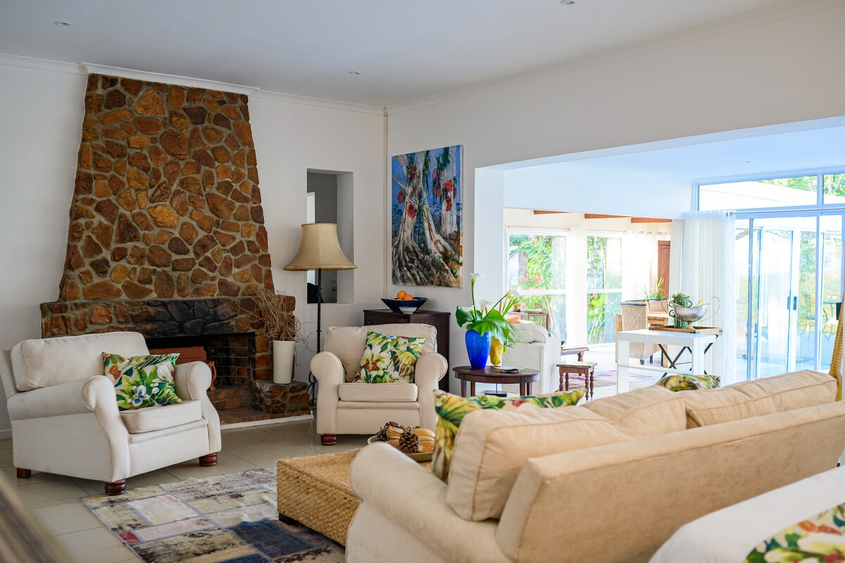 Experience the perfect blend of nature and comfort with your own swimming pool at our small family farm. You'll be surrounded by wild peacocks, free-range chickens and donkeys. Plus: - FREE 28-Page Garden Route Travel Guide - When you book with us, you’ll receive our exclusive Travel Guide full of hidden gems, activities, national parks, and extra safety and travel tips for your journey. - Homemade Breakfast Incl. - 2min Drive to 1# ranked Beach in Town - 1min Drive to Golf Club with Zebra's