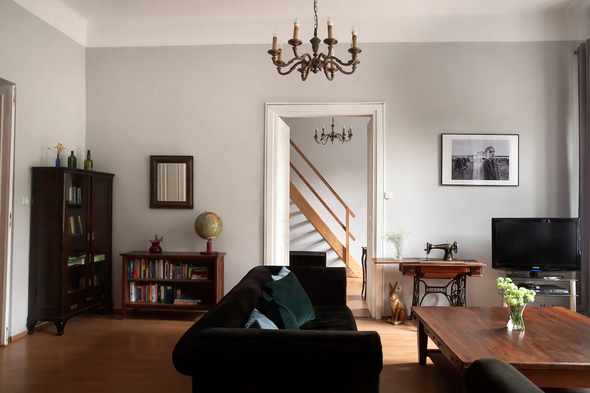 Ovaj stan od 110 kvadratnih metara sa visokim plafonima i velikim sobama budi romantične uspomene na prošlost Krakova. Praktično se nalazi između starog grada Krakova i jevrejske četvrti. Namješten po visokom standardu sa potpuno opremljenom kuhinjom