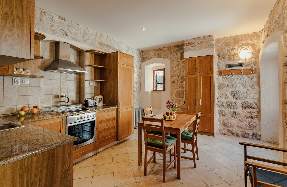 Ova stara kamena kuća uz obalu prvobitno je izgrađena u 19. veku i potpuno renovirana 2018. godine. Unutrašnjost predstavlja mešavinu tradicionalnog mediteranskog stila u kombinaciji sa modernim dizajnom. Smještena u mirnom starom ribarskom selu po imenu Muo, naša kuća je savršena baza za istraživanje zaliva. Stari grad Kotor je udaljen manje od 10 minuta vožnje, dok je aerodrom Tivat udaljen manje od 20 minuta. Kuća ima tri sprata i svaki sprat ima nesmetan pogled na more.