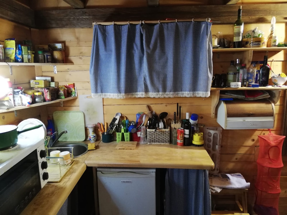 Nice wooden house, big backyard with a pool. There is a river nearby. Nearby restaurants(5-6km), market(1km), small monasteries. Ideal for rest, but for active holladay too, a lot of hiking ground around. Playground for small children. There is also a grill for barbeque outside in the yard. On the inside there is a full supply kitchen, bathroom, 2 bedrooms, dinning area with adjustable big bed and a living are with smart tv and a fireplace. It is up for 8 people max. And we are pet friendly!