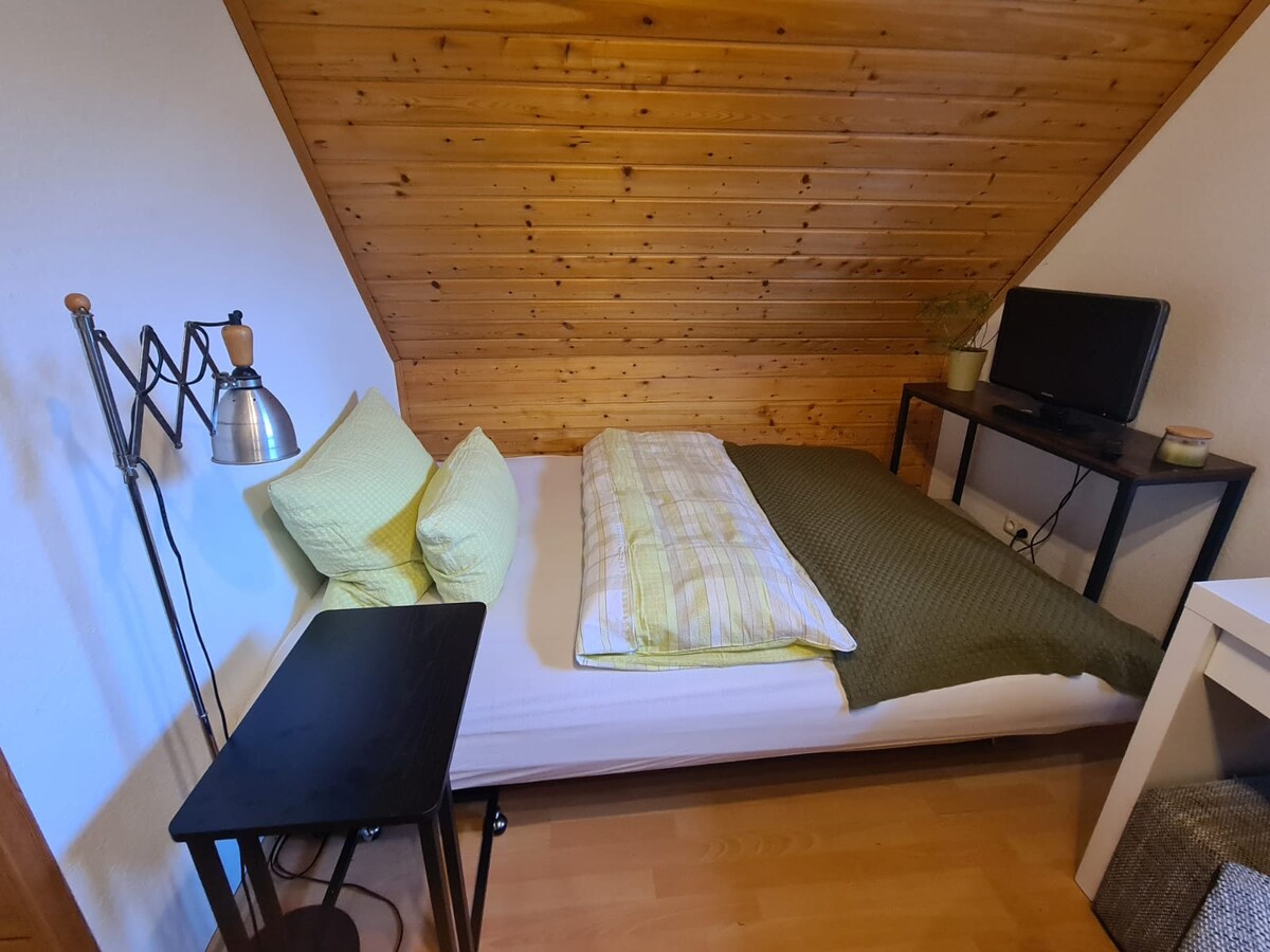 S ljubavlju namješten i potpuno opremljen stan nalazi se u potkrovlju sa predivnim pogledom na Kindelsberg. Predivno mirna lokacija, a ipak centralna: mnogi šoping objekti su na pješačkoj udaljenosti za nekoliko minuta, ali i do Siegerland Höhenringa (planinarske staze). Grad Siegen sa svojim istorijskim starim gradom i Olpe am Biggesee udaljeni su nešto manje od 20 km.