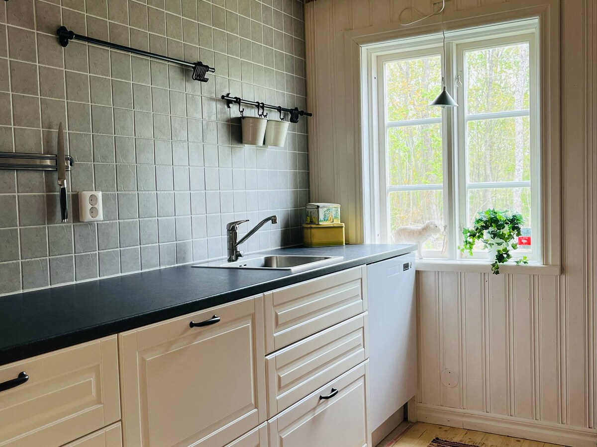 Välkommen till Torestorps Drängstuga - ett urgammalt hus i hjärtat av Småland! Här bor verklighetens sagor, hjältar, kärlek, hårt arbete och fest i väggarna. Huset är ca 100 m2 stort i två plan och ligger ett stenkast från en större mangårdsbyggnad mitt ute på landet i de småländska skogarna. Du tar dig till Kalmar och Öland på 30-60 minuter och till Nybro för att handla på tio. Det finns duntäcken, en vedeldad kamin, en bastu i skogen och katten Doris bor gärna hos dig om du vill ha sällskap.