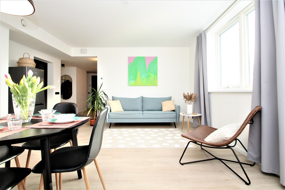 Studio od 36 m2 u centru grada nalazi se u nedavno izgrađenoj modernoj kući. Ima bračni krevet, potpuno opremljenu kuhinju i mogućnosti rada na daljinu sa radnim stolom (+27" spoljni monitor). Besplatan parking je dostupan u privatnoj podzemnoj garaži. Do centra grada se može doći pješice (oko 1 km ili 15 minuta hoda). Stan ima mnogo jutarnjeg sunca, a na 6. spratu se pruža lijep pogled na grad. Pogledajte vodič ispod mog profila da biste saznali više o dijelu grada!