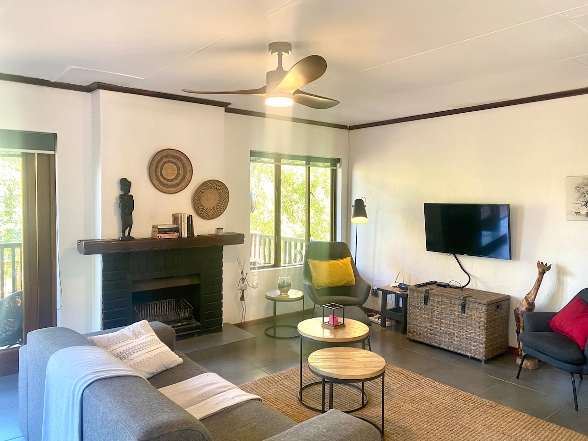 Prelijepa moderna kuća s 3 spavaće sobe koja se nalazi na imanju divljih životinja Hoedspruit. Okružen afričkom savanom, sa jelenom, žirafom i zebrom koja slobodno luta. Prostrani unutrašnji i spoljašnji dnevni prostori i zadivljujući bazen. 3 predivne spavaće sobe sa nevjerovatnim pogledom na grmlje, sve sa sopstvenim kupatilima, uključujući 2 tuša na ulaznim vratima Potpuno opremljena kuhinja koja će vam omogućiti da se pobrinete za goste u kući. Smješten nekoliko minuta od glavnog grada, nudi predivnu raznolikost u restoranima, pabovima i aktivnostima za sve uzraste.