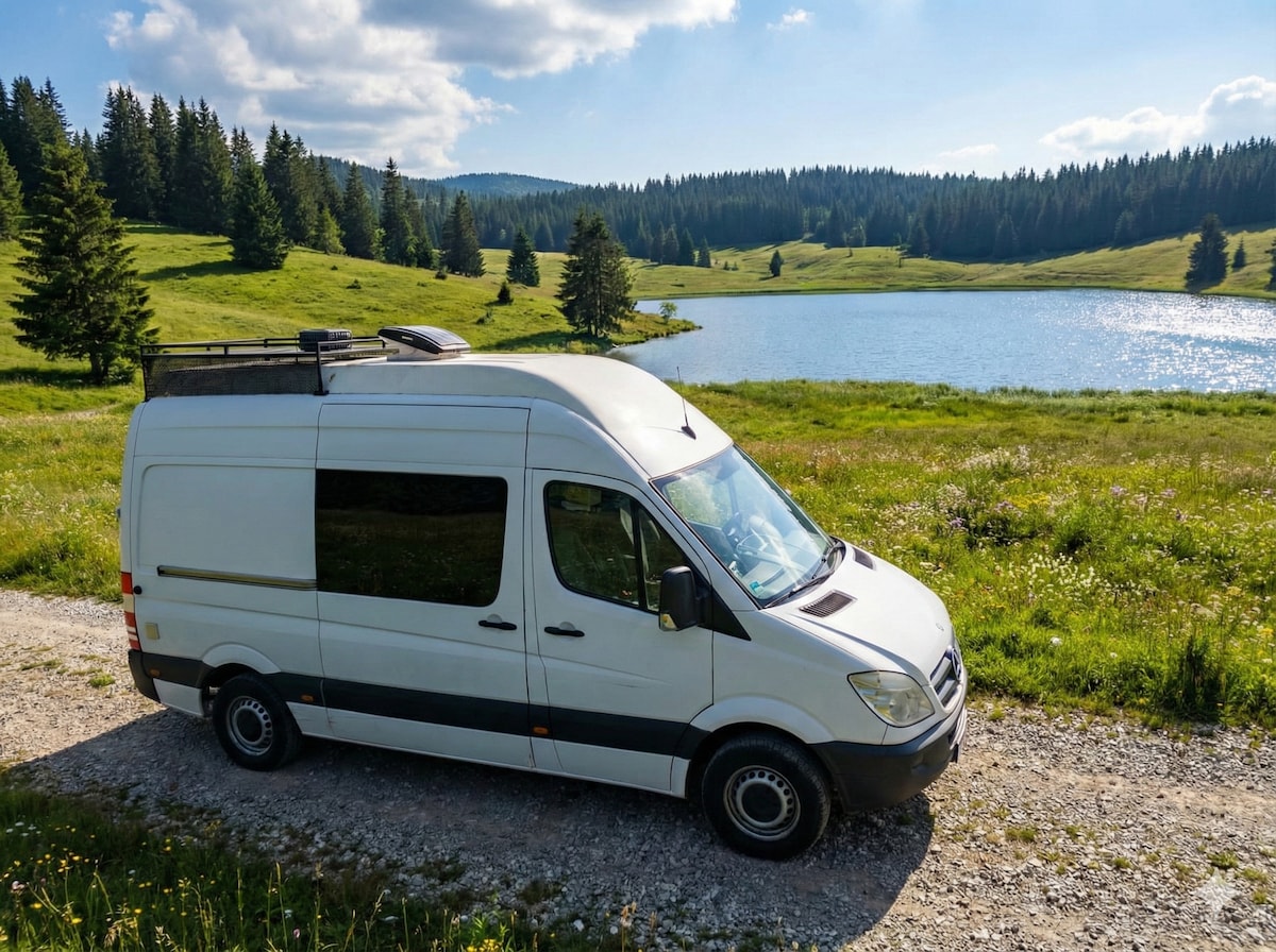 Vaša albanska avantura van mreže počinje ovdje! Ovaj novouređeni sprinter kombi za 3 osobe je u potpunosti samodovoljan. Kuvajte u opremljenoj kuhinji (frižider, šporet), a zatim se opustite na U-sofu koji se pretvara u puni krevet. Snažan solarni sistem pokreće vaše uređaje bilo gdje. Ima spoljni tuš (savršen za boravak nakon plaže!), prenosni toalet, Android Auto i kamere za parkiranje za jednostavno putovanje.