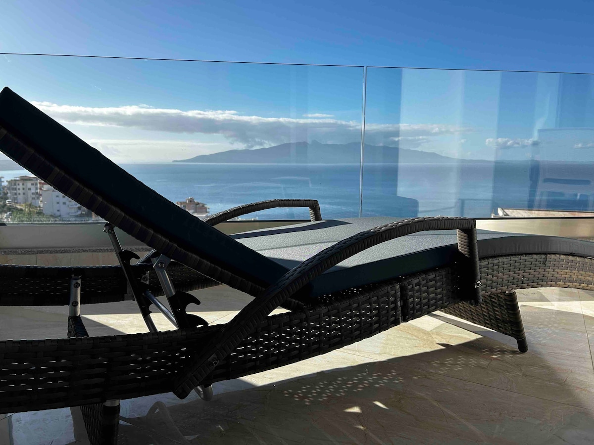 Doživite zalaske sunca koji oduzimaju dah iz ovog luksuznog penthausa od 200 m² sa panoramskim pogledom na Jonsko more i Krf, na pešačkoj udaljenosti od plaže. Ima 2 spavaće sobe, 2 kupatila, prostranu dnevnu sobu, potpuno opremljenu kuhinju i veliki privatni balkon. Brzi Wi-Fi i privatni parking su uključeni. Savršen spoj udobnosti, privatnosti i nezaboravnih pogleda u Sarandi.