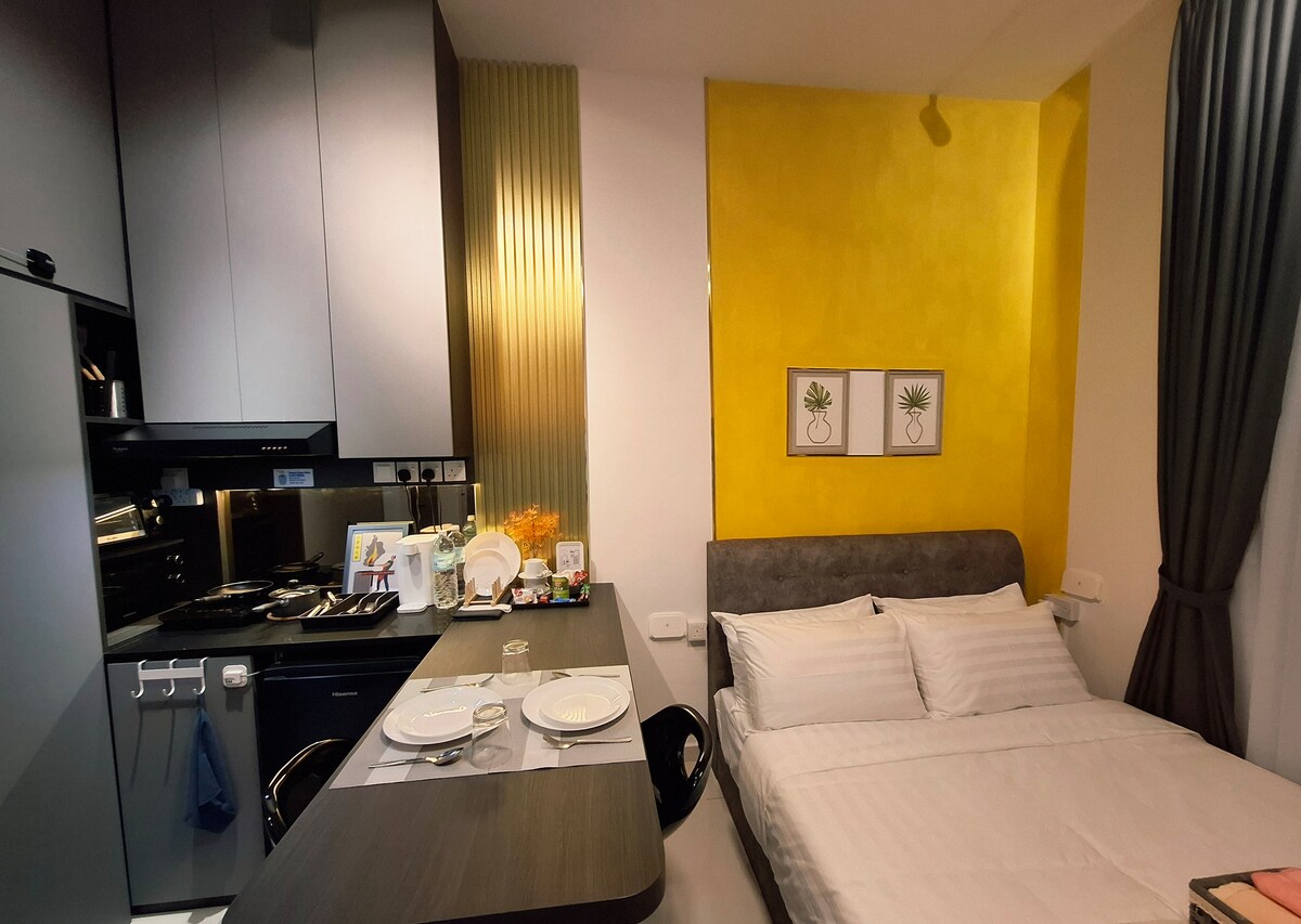 Twin Galaxy Residence! Dobro došli u našu prostranu/zelenu i udobnu studio jedinicu sa nevjerovatnim pogledom na grad❤️, savršenu za par, male porodice, poslovne putnike/turiste za 2/3 osobe. Naša jedinica se nalazi u srcu grada Johor Bahru, mjesto je okruženo raznovrsnim restoranima F&B, porodičnim spa/masažnim centrom, praktičnom prodavnicom, noćnim životom itd. Dođite da uživate ^^ Kuća je opremljena krevetom veličine 1 x kraljicom, sofom (takođe kaučem na razvlačenje), namjenskim radnim prostorom i kuhinjom sa dnevnom osnovnom opremom :)