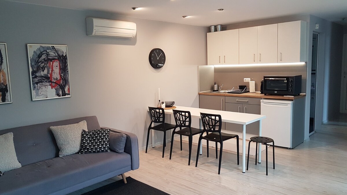Potpuno novi dvosobni stan samo 1 minut od glavne pešačke zone u Varni! Uživajte u elegantnom enterijeru, potpuno opremljenoj kuhinji i privatnom unutrašnjem đakuziju – savršenom za opuštanje nakon cjelodnevnog izlaska. Idealno za parove, porodice ili poslovne putnike. Brzi Wi-Fi, klima-uređaj u svakoj prostoriji i sva udobnost za odličan boravak u srcu grada. Stan se nalazi u prizemlju 2 besplatna parking mjesta 🅿️ 🚗 🚙