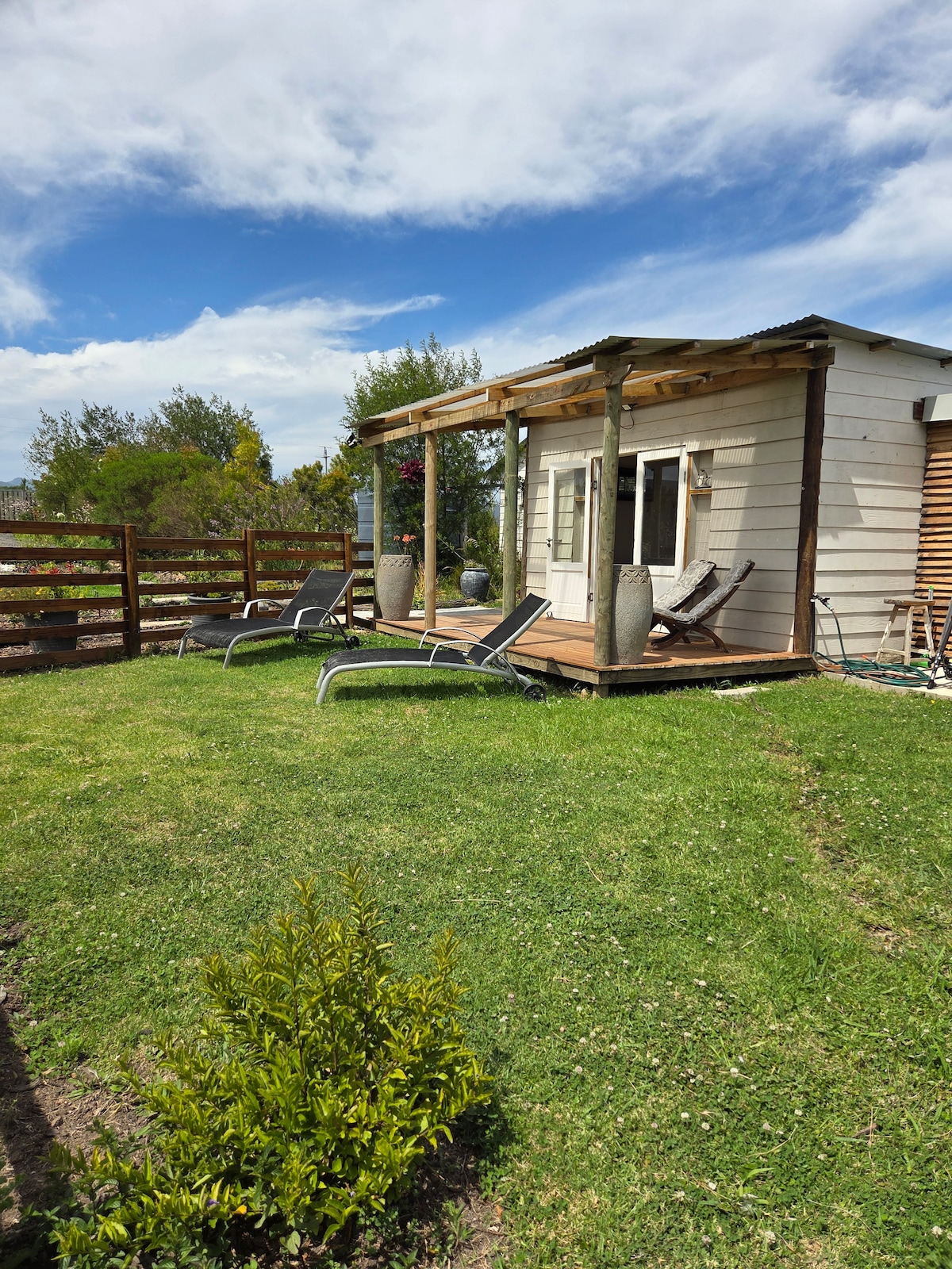 Ova moderna novouređena privatna i opuštena seoska kućica sa solarnom energijom savršena je lokacija za porodice ili parove koji žele da dožive sve što Garden Route nudi. Nalazi se na rijeci Bitou udaljenoj samo 6 km od zaliva Plettenberg. Poznat po životu ptica, biciklističkim i trkačkim stazama i dovoljno daleko od grada da doživite sporiji tempo života. Vožnja od 5 do 10 minuta do najbližih svetski poznatih vinskih imanja i više plaža sa plavim zastavicama koje možete da birate.